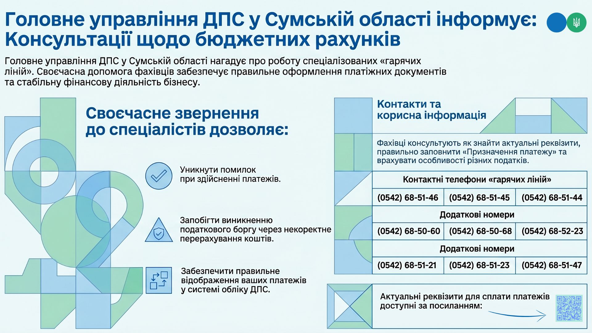 Телефонні консультації ДПС Сумщини з питань бюджетних рахунків