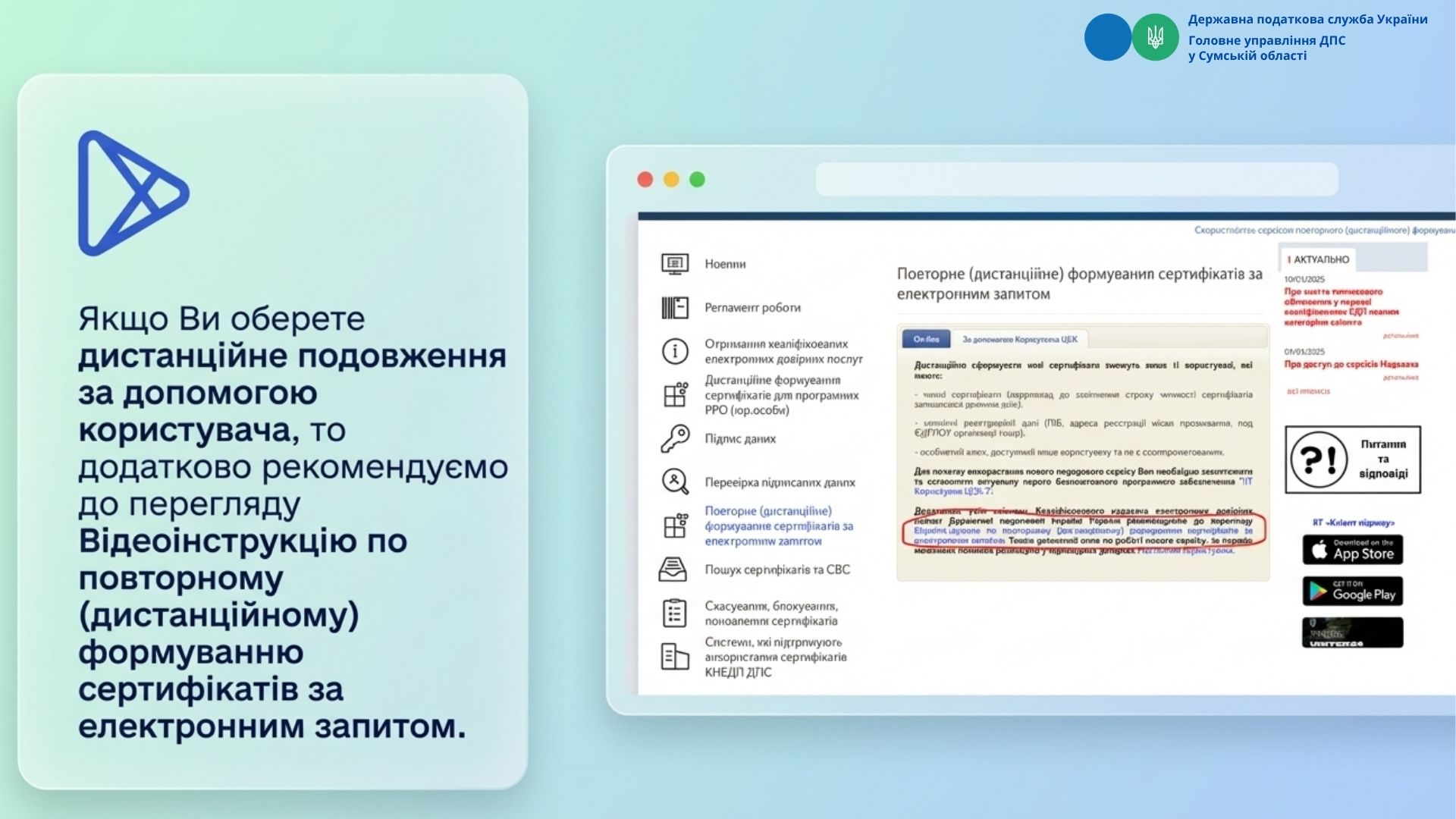 Повторне (дистанційне) формування сертифікатів за електронним запитом