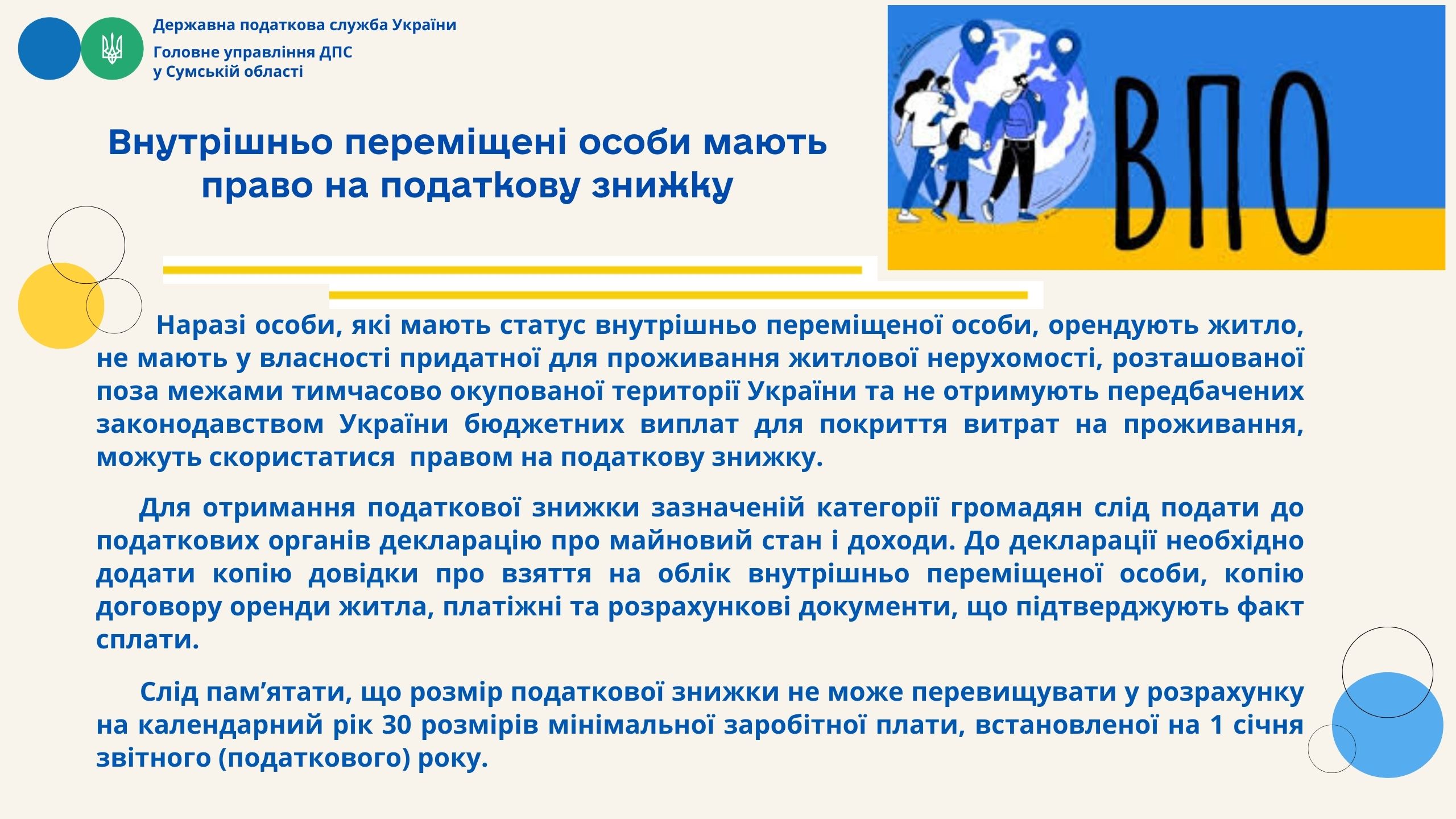 Внутрішньо переміщені особи мають право на податкову знижку
