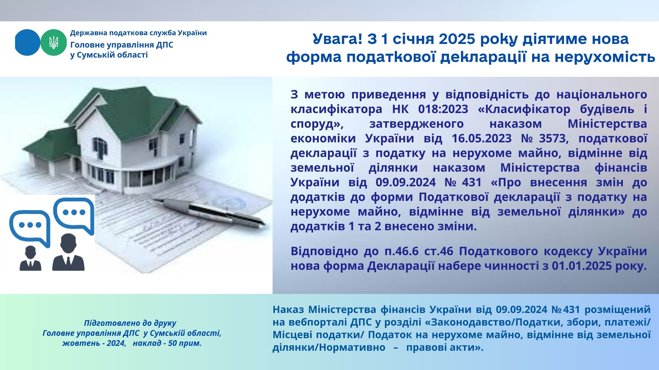 З 1 січня 2025 року діятиме нова форма декларації на нерухомість