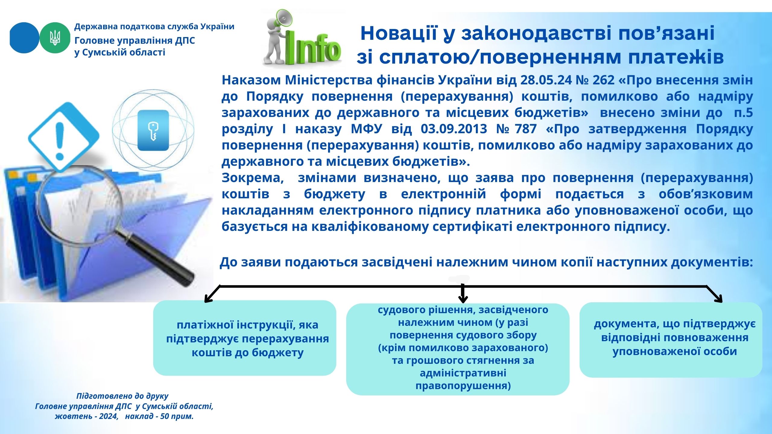 Новації у законодавстві пов'язані зі сплатою/поверненням платежів