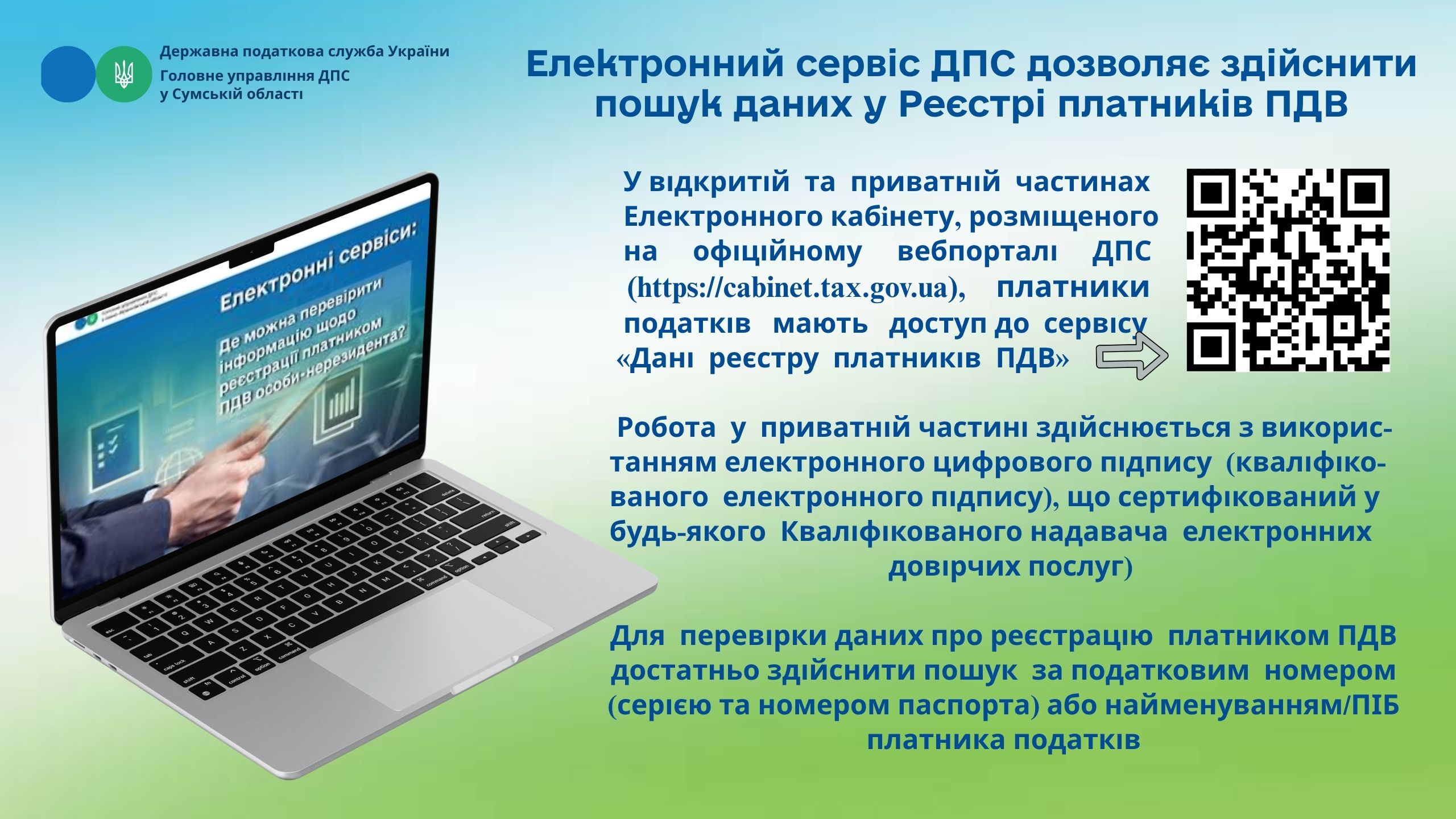 Електронний сервіс ДПС дозволяє здійснити пошук даних у Реєстрі платників ПДВ