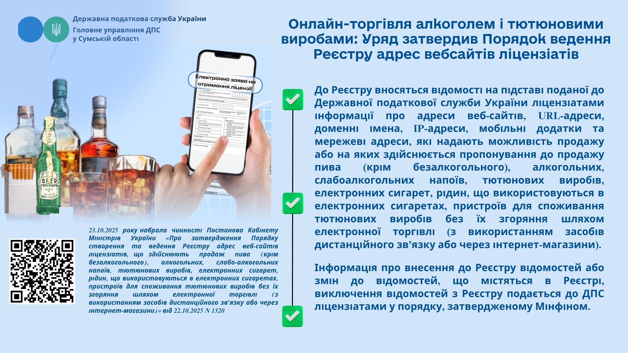 Онлайн-торгівля алкоголем і тютюновими виробами: Уряд затвердив Порядок ведення Реєстру адрес вебсайтів ліцензіатів
