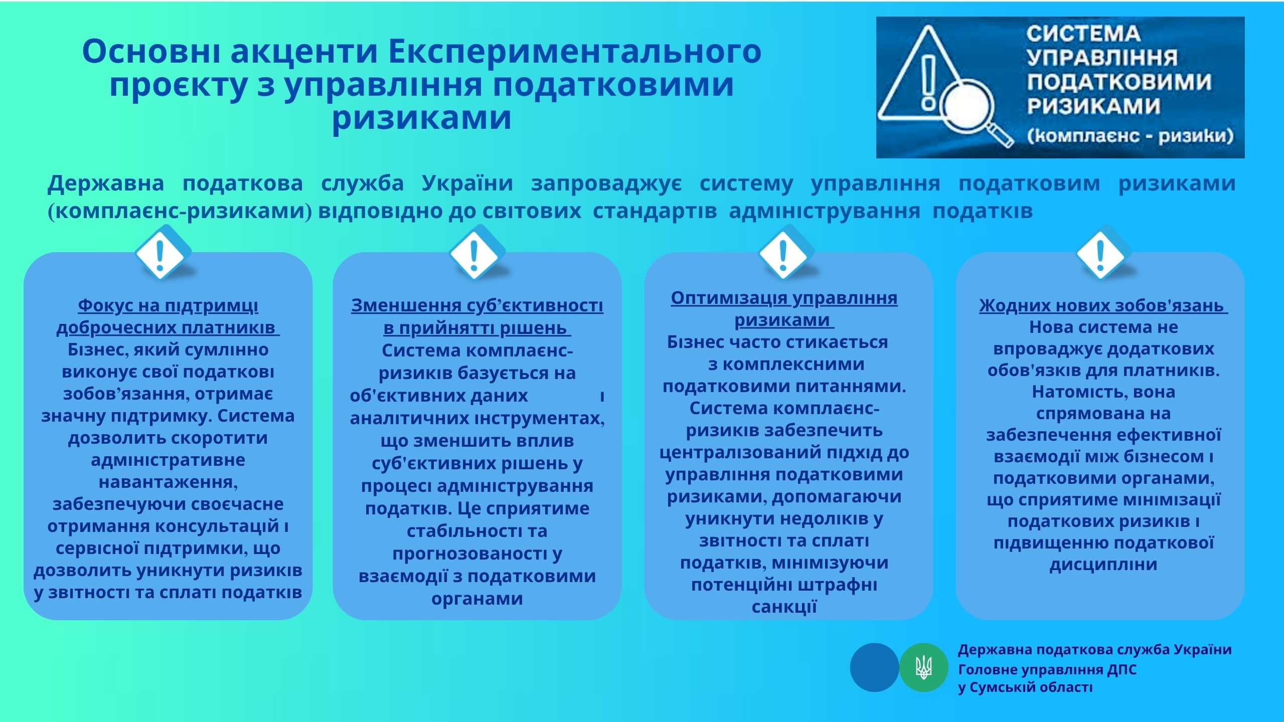 Основні акценти Експериментального проєкту з управління податковими ризиками
