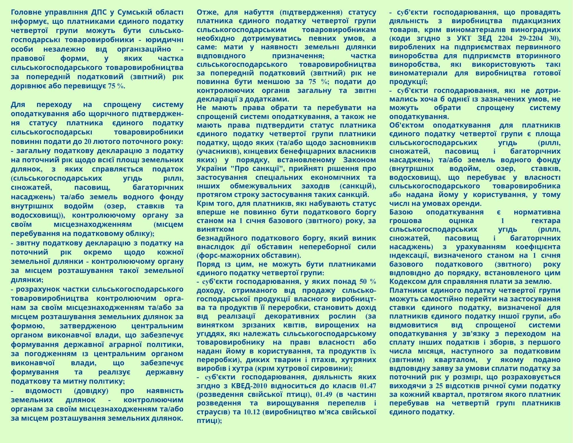 Особливості адміністрування єдиного податку четвертої групи та мінімального податкового зобов'язання