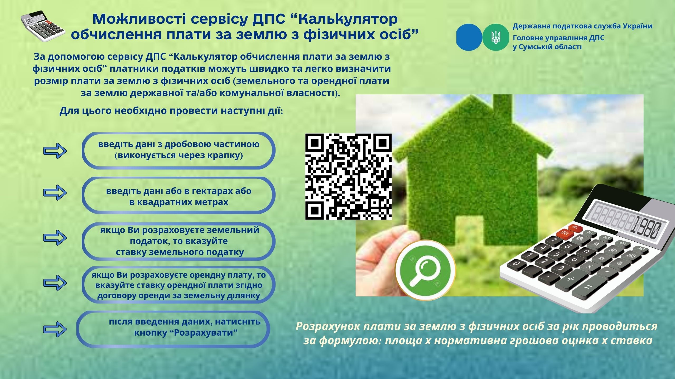 Можливості сервісу ДПС "Калькулятор обчислення плати за землю з фізичних осіб"