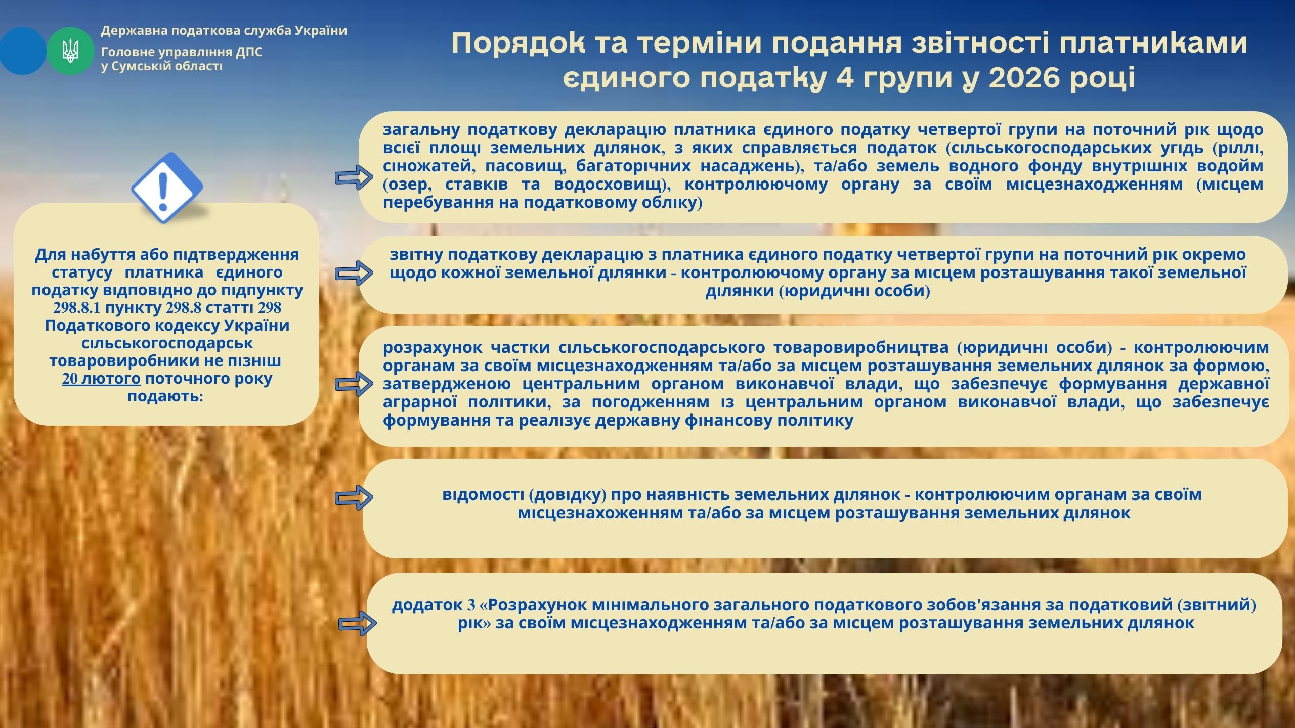 Порядок та терміни подання звітності платниками єдиного податку 4 групи у 2026 році
