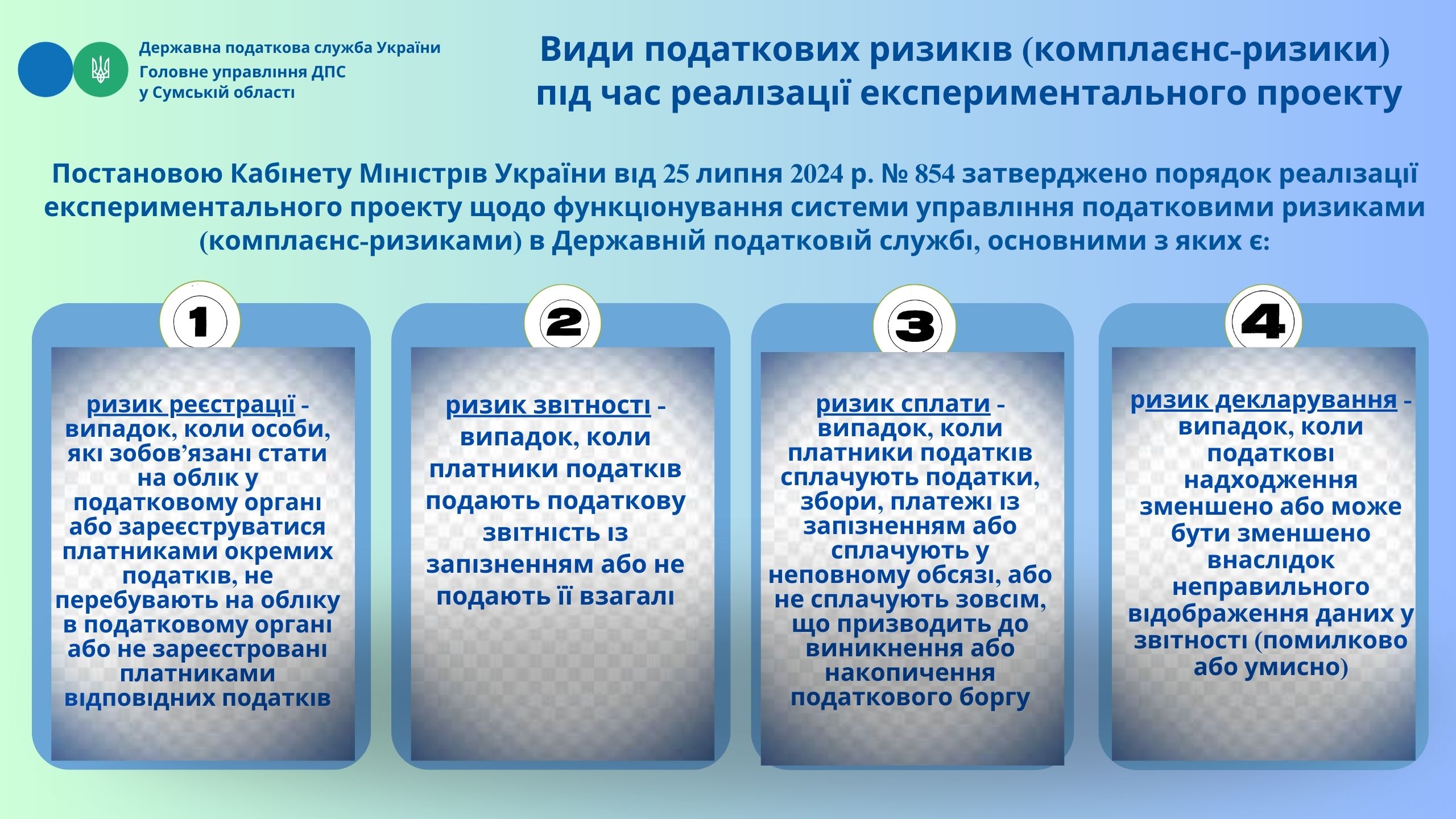 Види податкових ризиків (комплаєнс-ризики) під час реалізації експериментального проєкту