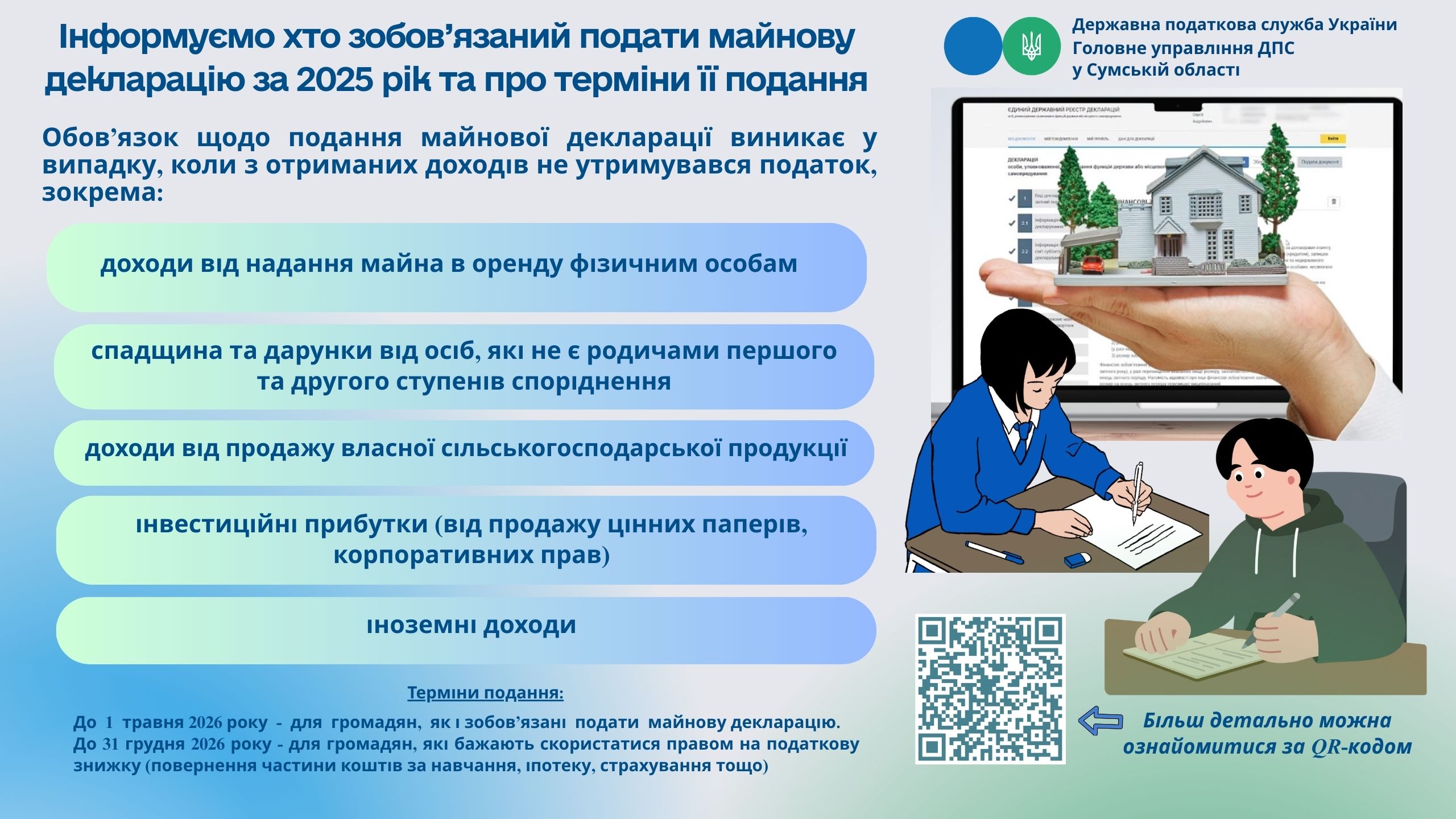 Інформуємо хто зобов'язаний подати майнову декларацію за 2025 рік та про терміни її подання