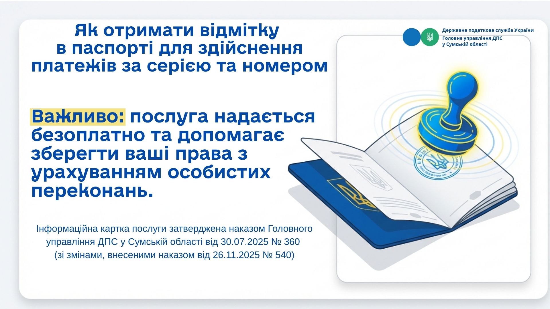 Як отримати відмітку в паспорті для здійснення платежів за серією та номером