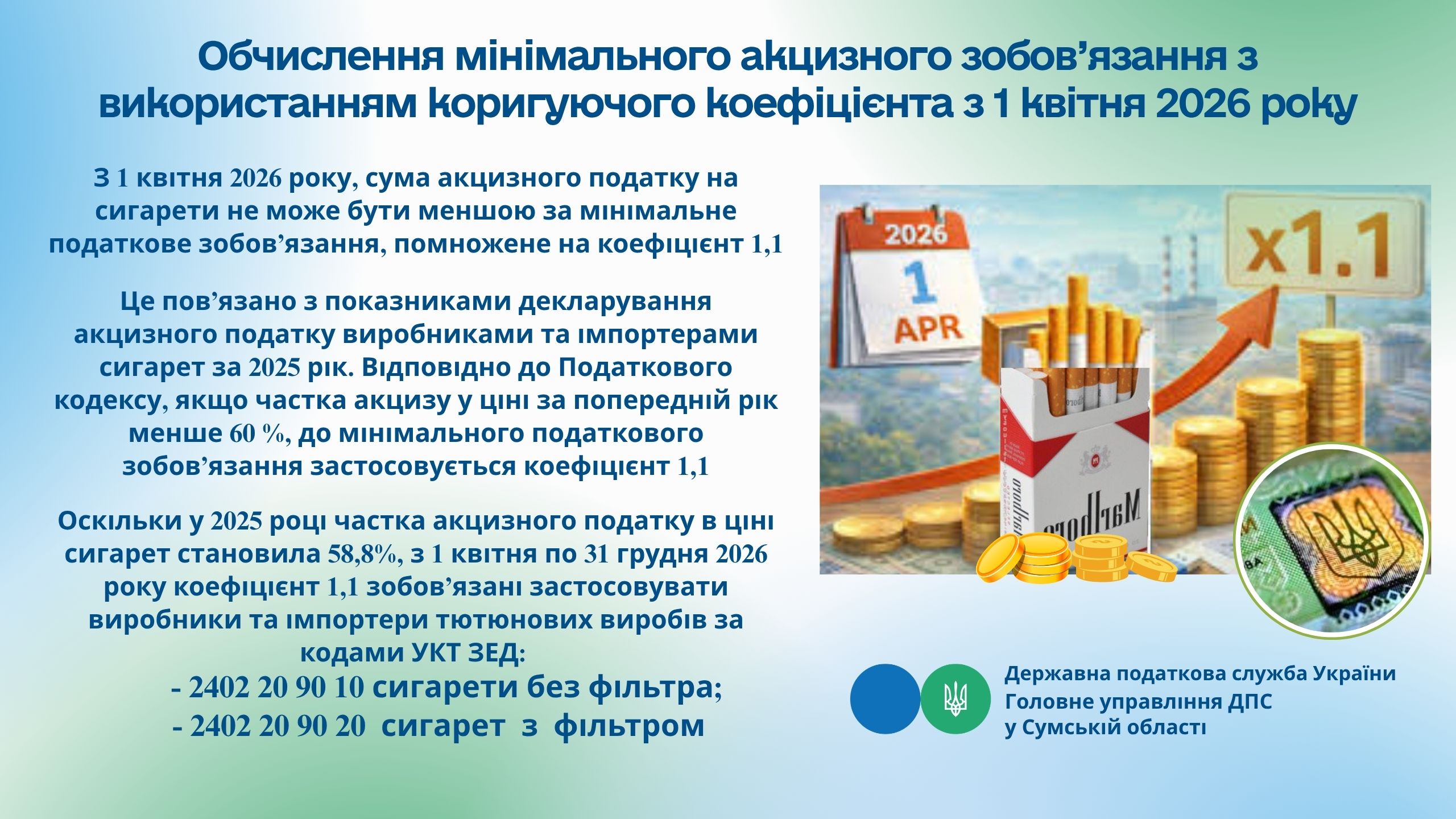 Обчислення мінімального акцизного зобов'язання з використанням коригуючого коефіцієнта з 1 квітня 2026 року
