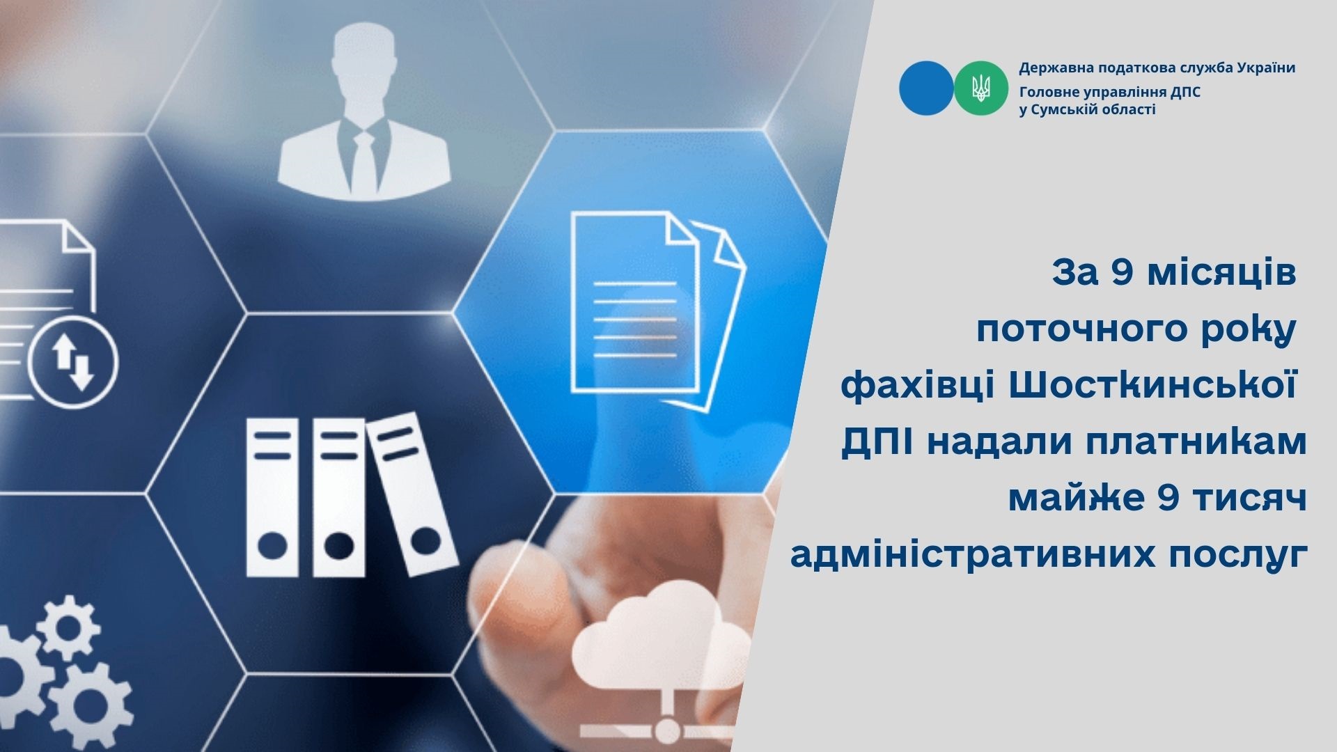 Центром обслуговування платників Шосткинської ДПІ Головного управління ДПС у Сумській області за 9 місяців поточного року опрацьовано 9332 звернень щодо надання адміністративних послуг та надано платникам 8903 адміністративних послуг.