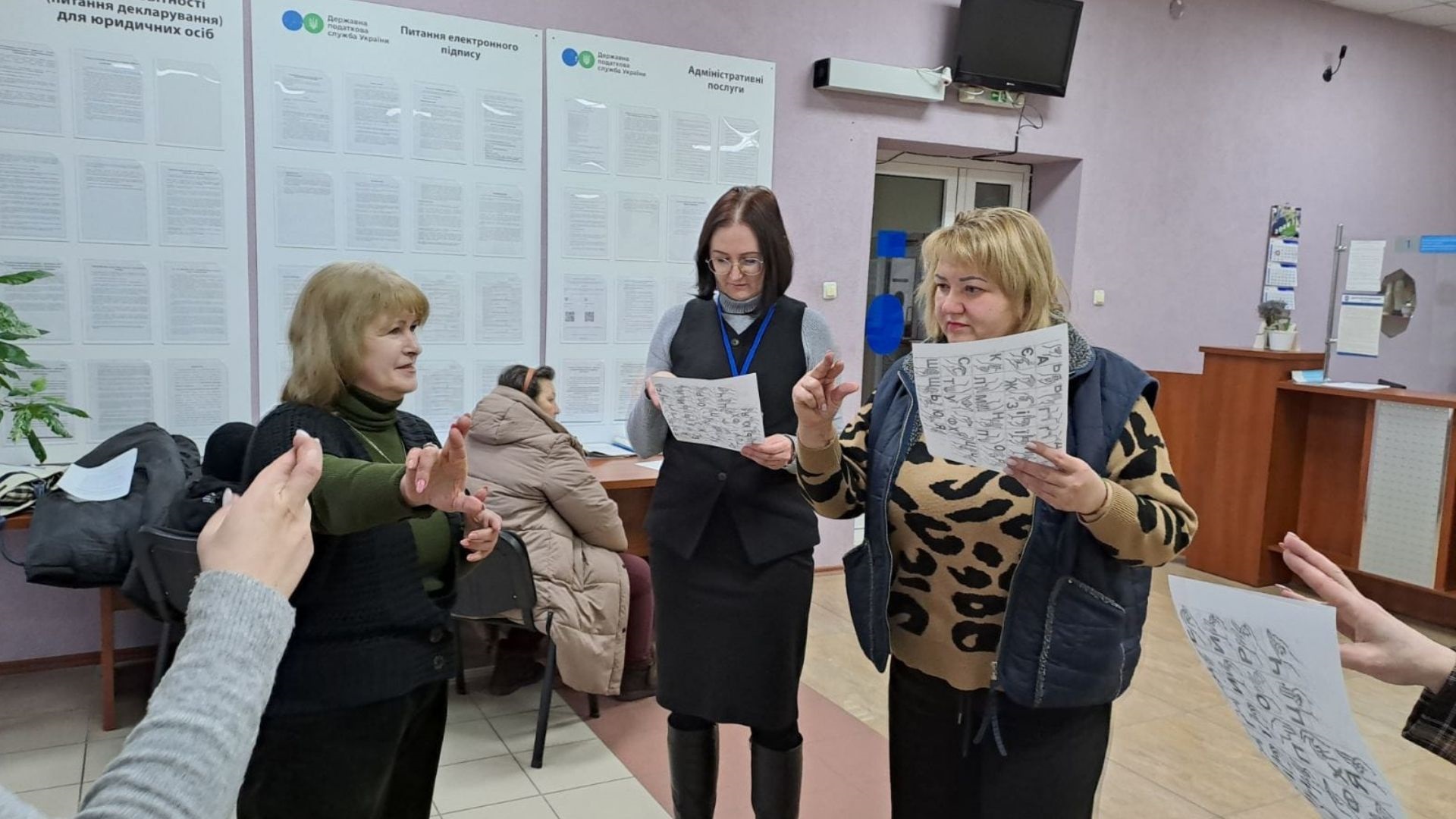 Під час тренінгу податківці здобули базові навички живого спілкування жестовою мовою та практичний досвід застосування онлайн-сервісу з сурдоперекладу для забезпечення комфортної комунікації та належного обслуговування відвідувачів з вадами слуху.