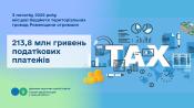 У розрізі бюджетоформуючих податків до бюджетів територіальних громад надійшло: податку на доходи фізичних осіб – 110,0 млн грн, єдиного податку – 54,4 млн грн, земельного податку - 31,1 млн грн, податку на нерухоме майно – 2,3 млн гривень.