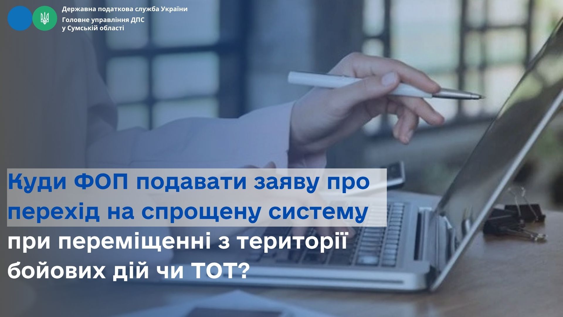 Таким чином, фізична особа – підприємець у разі зміни податкової адреси, пов’язаної зі зміною адміністративного району, або у разі зміни місцезнаходження (місця проживання) з території, на якій ведуться (велися) бойові дії або тимчасово окупованих російською федерацією територіях України, на іншу територію України, подає заяву про перехід на спрощену систему оподаткування до контролюючого органу за основним місцем обліку, тобто за новим місцезнаходженням.
