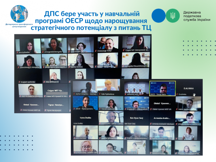 Команда Департаменту трансфертного ціноутворення разом з колегами територіальних органів ДПС, щотижнево впродовж 2022 року, братиме участь в інтенсивній програмі нарощування потенціалу з питань трансфертного ціноутворення. Організатором навчальних тренінгів є Організація економічного співробітництва та розвитку (далі – ОЕСР) за сприянням Міністерства фінансів України.