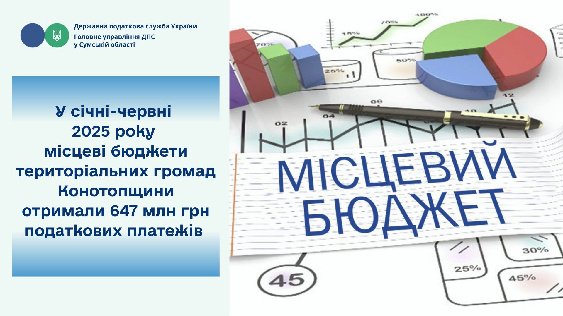 У січні-червні 2025 році місцеві бюджети територіальних громад Конотопщини отримали 647,0 млн грн податкових платежів