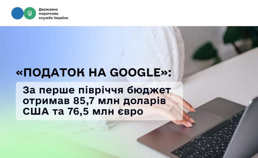 «Податок на Google»: За перше півріччя бюджет отримав 85,7 млн доларів США та 76,5 млн євро