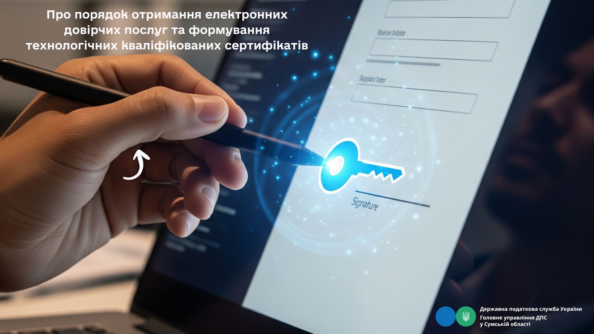 Інформуємо, що для отримання електронних довірчих послуг та формування технологічних кваліфікованих сертифікатів звертається особисто керівник юридичної особи або відповідальна особа передбачена Порядком використання електронних довірчих послуг в органах державної влади, органах місцевого самоврядування, підприємствах, установах та організаціях державної форми власності, затвердженим постановою Кабінету Міністрів України від 1 серпня 2023 року № 798 (зі змінами).