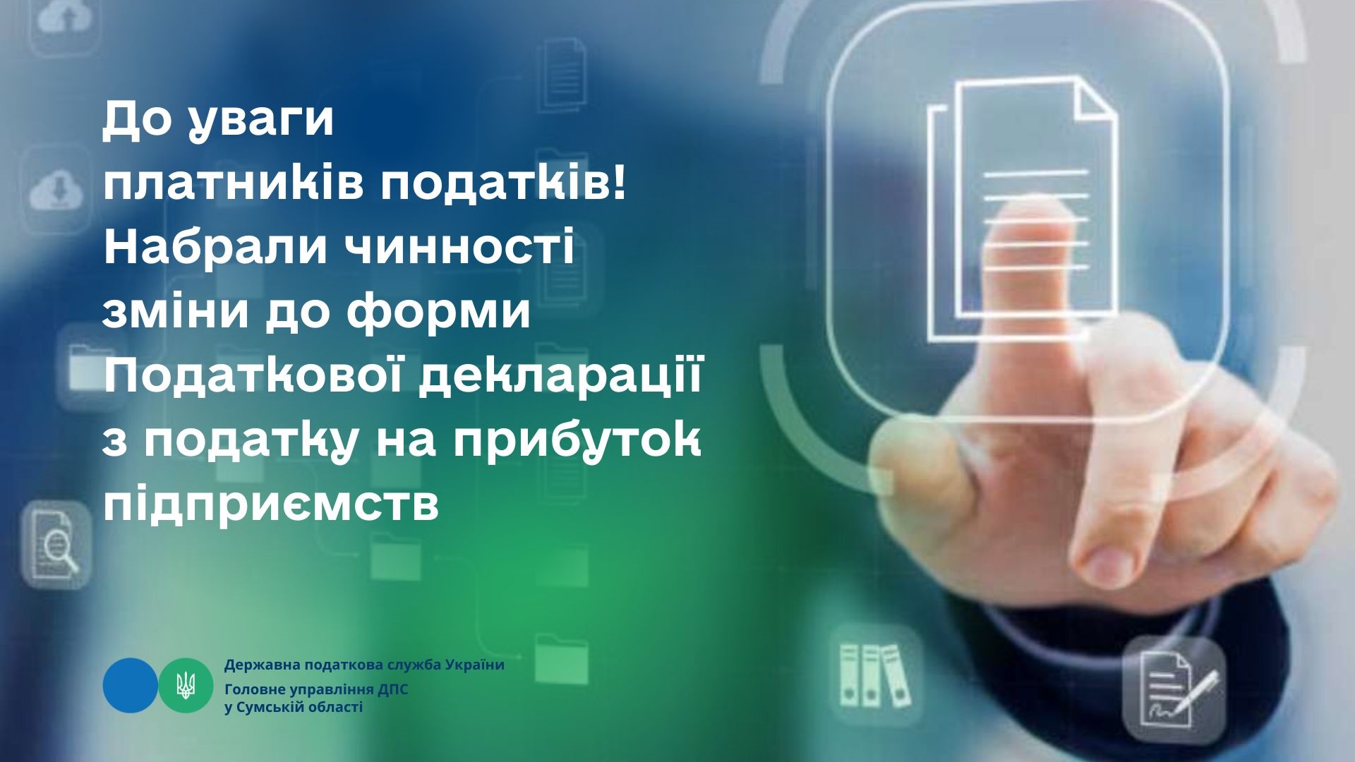 - До уваги платників податків! Набрали чинності зміни до форми Податкової декларації з податку на прибуток підприємств
