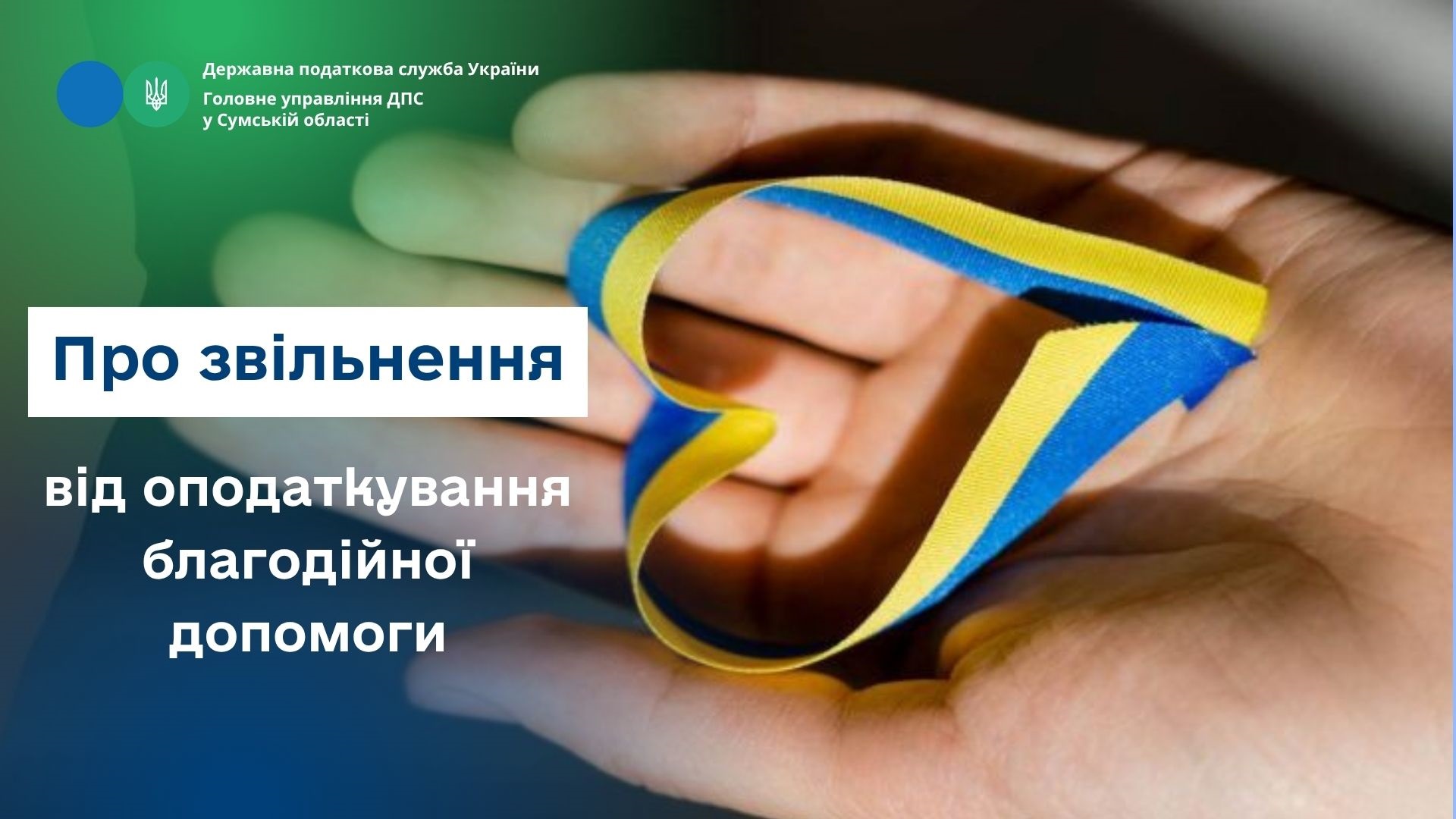 Головне управління ДПС у Сумській області   нагадує, що відповідно до підпункту 165.1.54 пункту 165.1 статті 165 Кодексу до загального місячного (річного) оподатковуваного доходу платника податків не включається сума (вартість) благодійної допомоги: