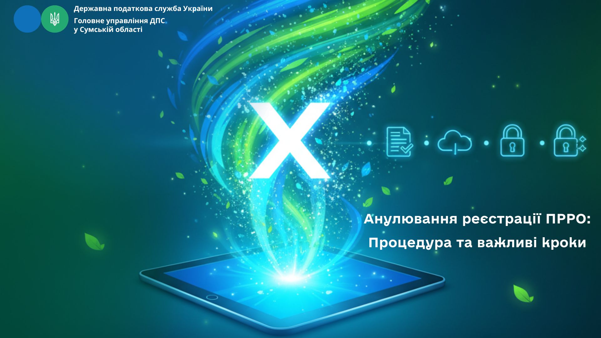 Головне управління ДПС у Сумській області повідомляє, що для скасування реєстрації програмного реєстратора розрахункових операцій (далі – ПРРО) необхідно подати Заяву про реєстрацію програмних реєстраторів розрахункових операцій за формою № 1-ПРРО (ідентифікатор форми J/F1316605) з позначкою «Скасування реєстрації».