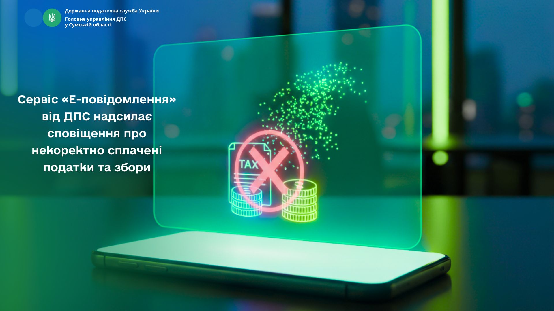 Головне управління ДПС у Сумській області інформує, що з метою підвищення рівня інформування платників податків про суми помилково сплачених податкових платежів, єдиного внеску Державною податковою службою України розроблено та впроваджено новий сервіс «Е-повідомлення».