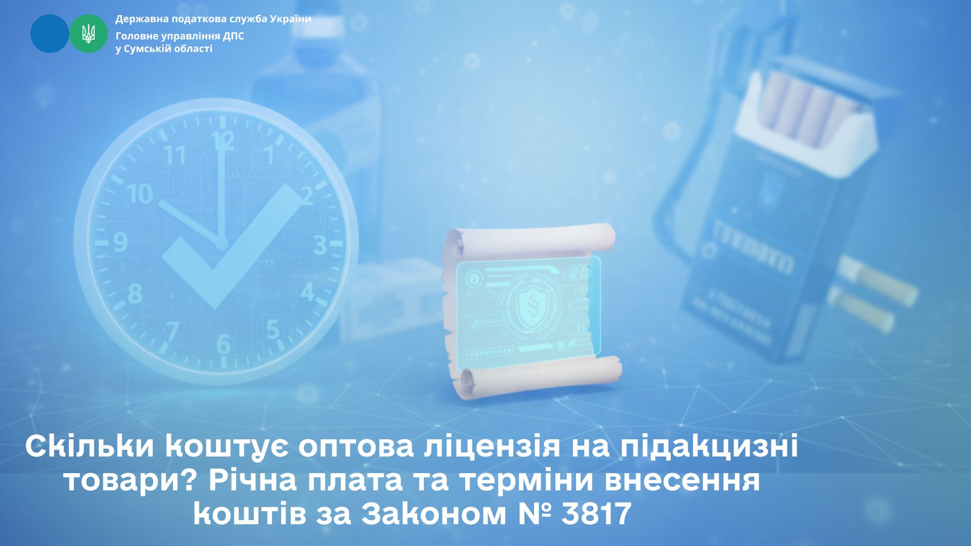 У ст. 51 Закону України від 18 червня 2024 року № 3817-ІХ «Про державне регулювання виробництва і обігу спирту етилового, спиртових дистилятів, біоетанолу, алкогольних напоїв, тютюнових виробів, тютюнової сировини, рідин, що використовуються в електронних сигаретах, та пального» (із змінами) (далі – Закон № 3817) зазначено, що річну плату за ліцензії на право оптової торгівлі спиртом етиловим, спиртовими дистилятами, алкогольними напоями, тютюновими виробами, рідинами, що використовуються в електронних сигаретах, пальним встановлено у розмірі: