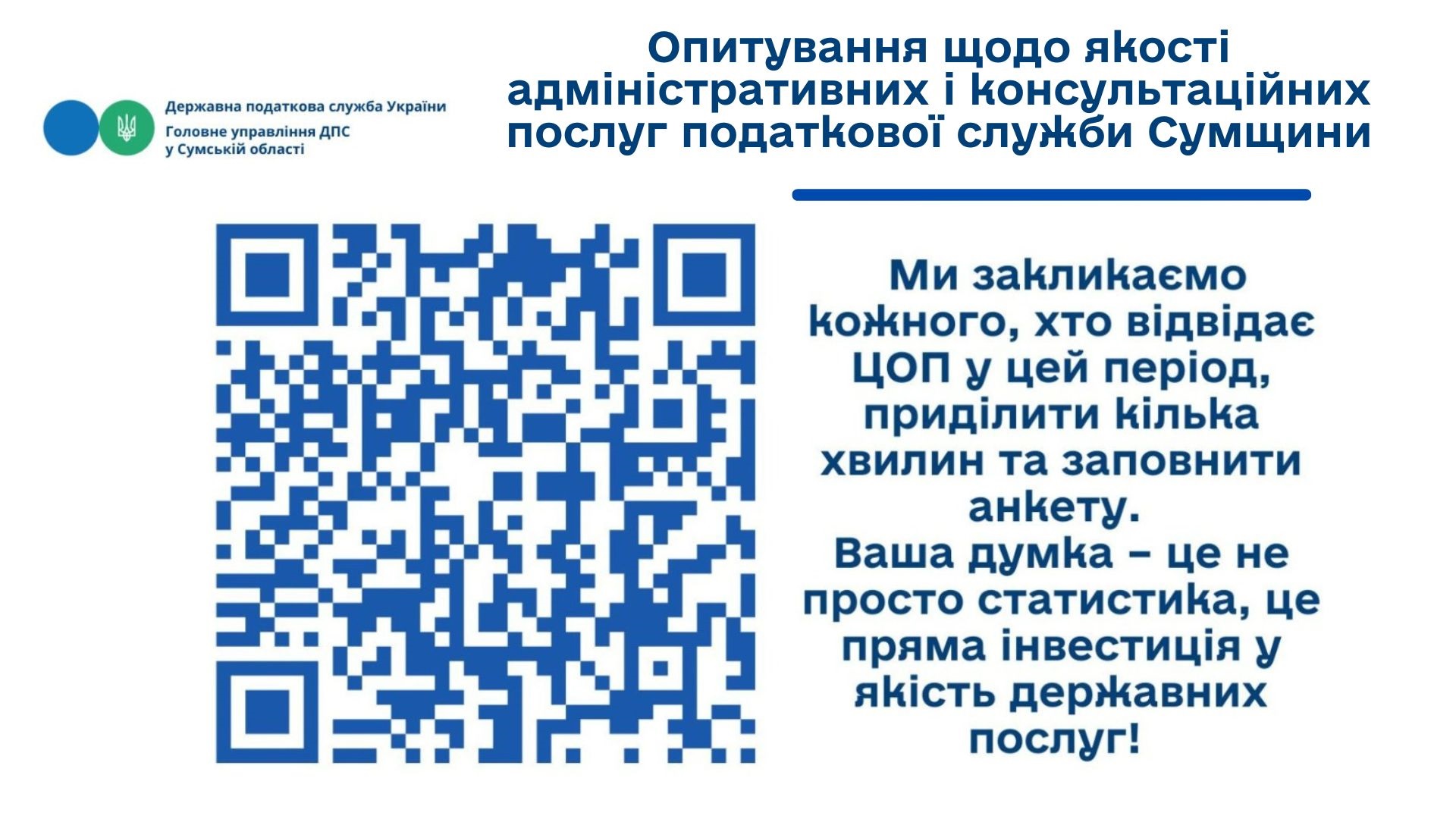 Головне управління ДПС у Сумській області запрошує всіх узяти участь у цьому опитуванні, адже саме ваша думка допоможе зробити податкові послуги зручнішими та ефективнішими!