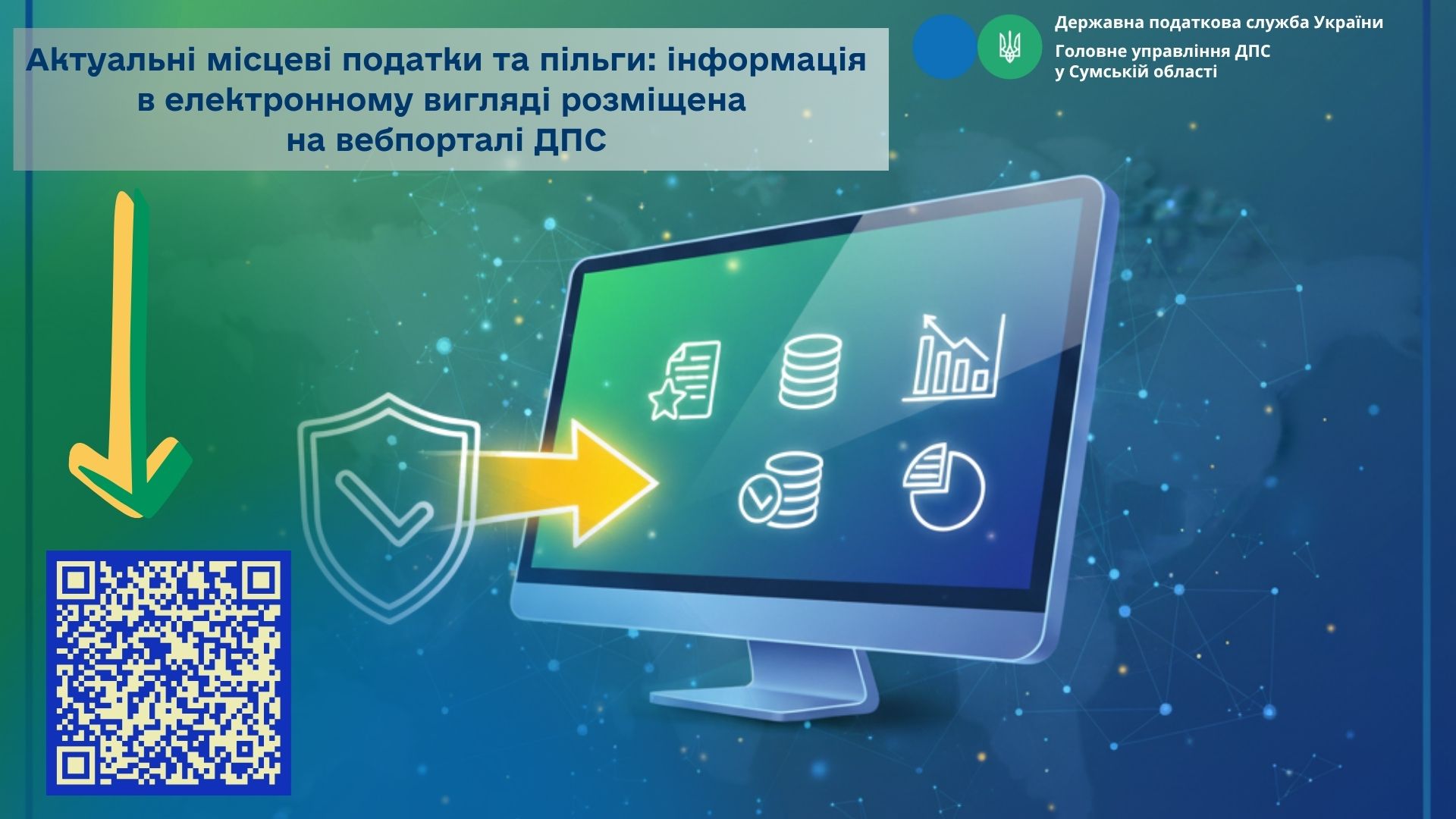 Головне управління ДПС у сумській області інформує, що на вебпорталі ДПС розміщено зведену інформацію про розмір та дату встановлення на відповідних територіях ставок місцевих податків та/або зборів, а також про встановлені на відповідних територіях податкові пільги, які надані в електронному вигляді органами місцевого самоврядування.