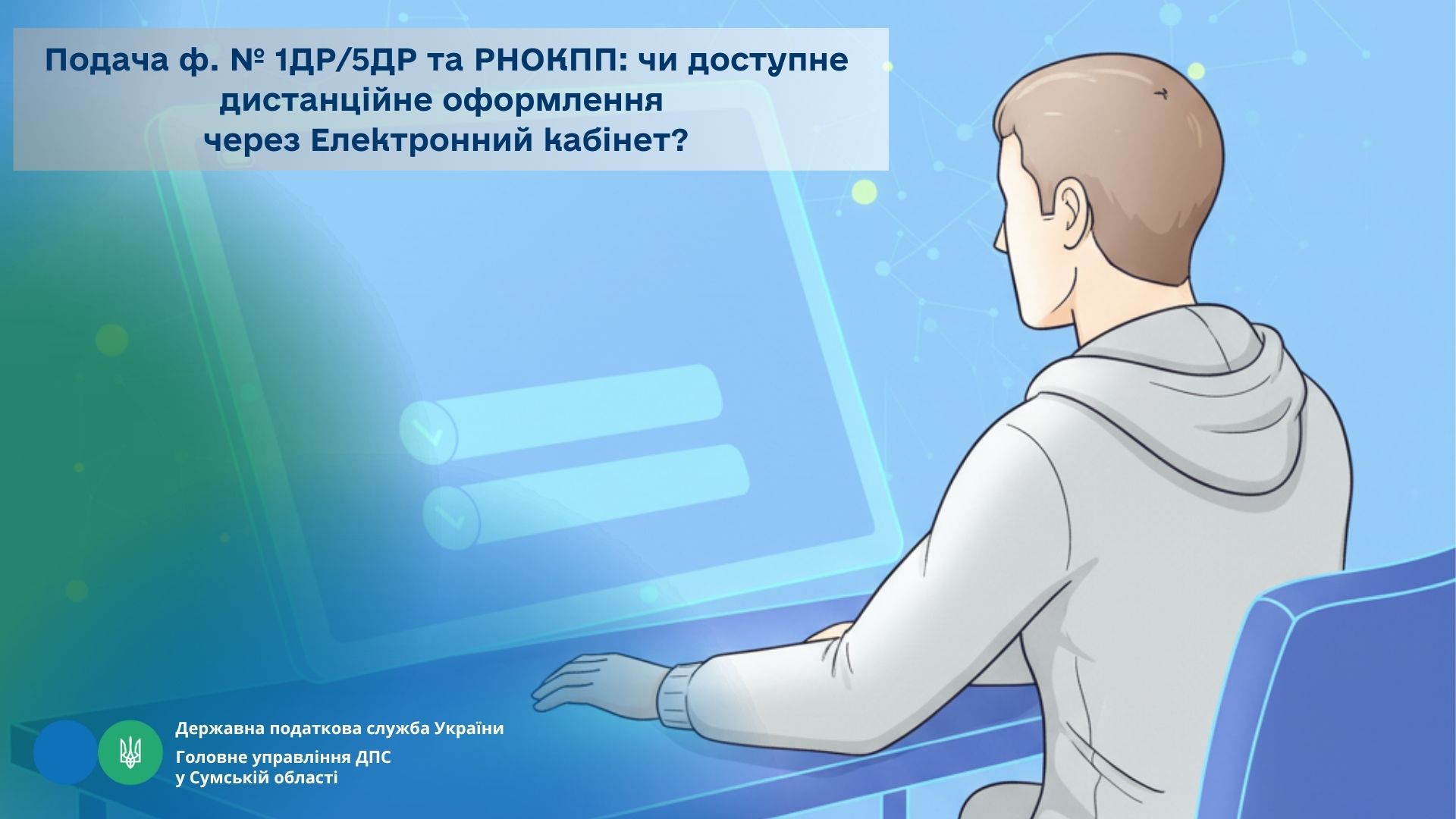 В електронній формі Облікова картка за ф. № 1ДР подається через розділ «Облікова картка фізичної особи (1ДР)», Заява за ф. № 5ДР через розділ «Заява про внесення змін до ДРФО (5ДР)» меню «ЕК для громадян» приватної частини Електронного кабінету.