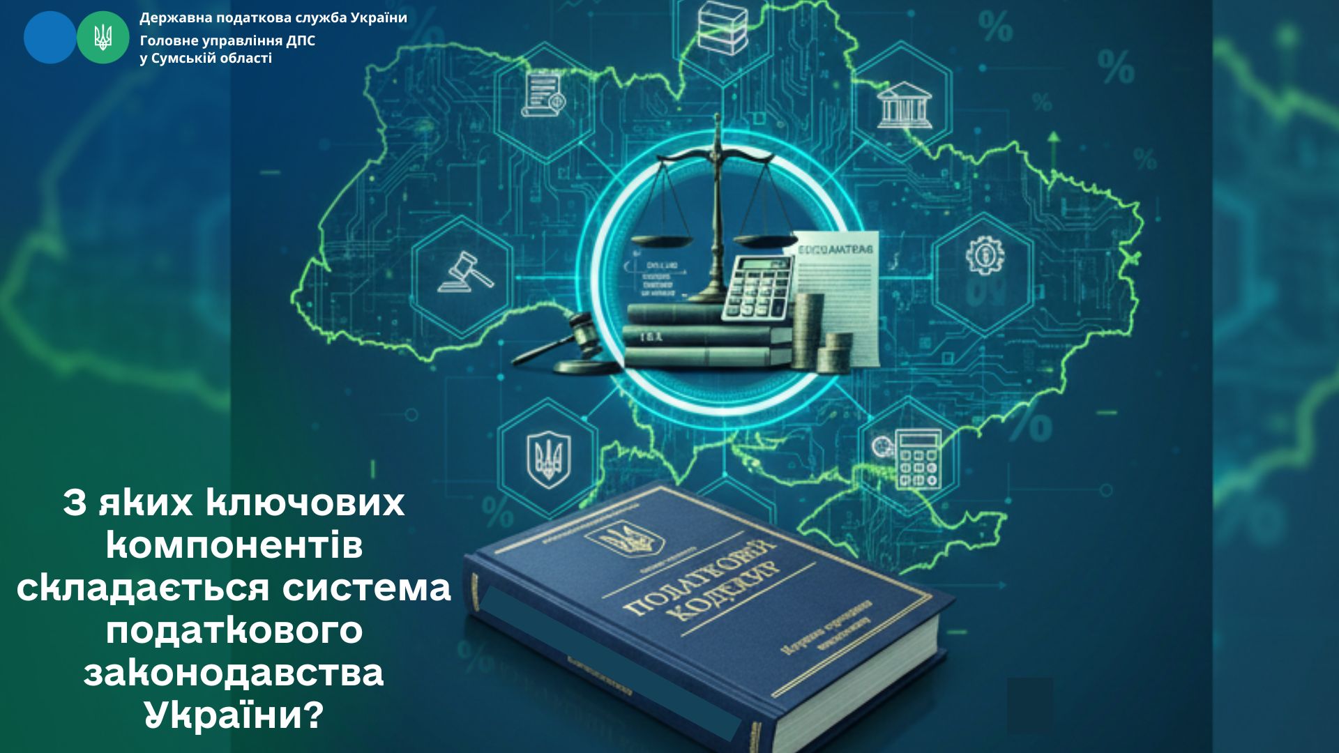 Головне управління ДПС у Сумській області нагадує, що податкове законодавство України складається з таких ключових компонентів: Конституції України; Податкового кодексу України; Митного кодексу України та інших законів з питань митної справи, які регулюють правовідносини, пов'язані з оподаткуванням митом; чинних міжнародних договорів, згода на обов'язковість яких надана Верховною Радою України, і які регулюють питання оподаткування; нормативно-правових актів, прийнятих на підставі та на виконання цього Кодексу та законів з питань митної справи; а також рішень Верховної Ради Автономної Республіки Крим та органів місцевого самоврядування з питань місцевих податків та зборів, прийнятих за встановленими цим Кодексом правилами.
