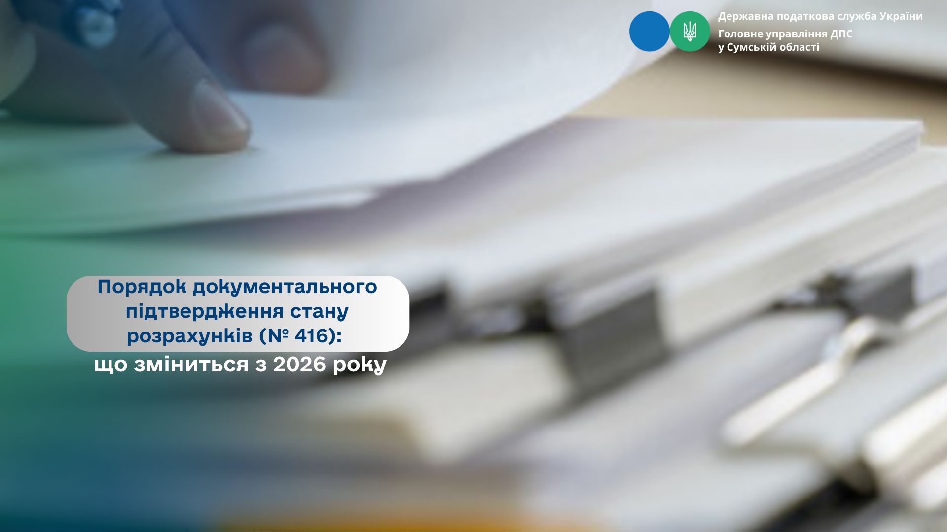 Головне управління ДПС у Сумській області повідомляє, що наказом Міністерства фінансів України від 20.08.2025 №416 затверджено Порядок документального підтвердження стану розрахунків платника за податками, зборами, платежами та ЄСВ , який набуде чинності з 14 січня 2026 року.