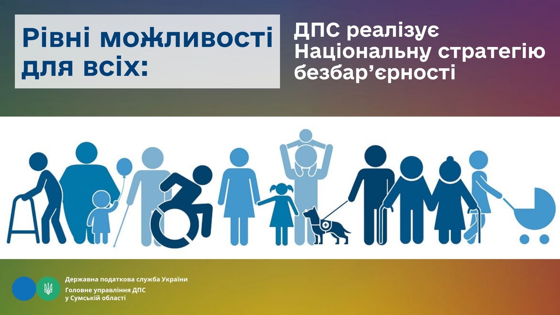 Головне управління ДПС у Сумській області нагадує: розпорядженням Кабінету Міністрів України від 14 квітня 2021 року № 366-р схвалено Національну стратегію із створення безбар’єрного простору в Україні на період до 2030 року (із змінами) (Стратегія). Ця Стратегія розроблена відповідно до принципів та інструментів методології управління, орієнтованого на результат, спрямована на сталий, інклюзивний розвиток і забезпечення доступності та людиноцентричності у всіх сферах життєдіяльності суспільства, розв’язання наявних проблем та задоволення потреб різних суспільних груп шляхом виконання визначених завдань та досягнення поставлених цілей.