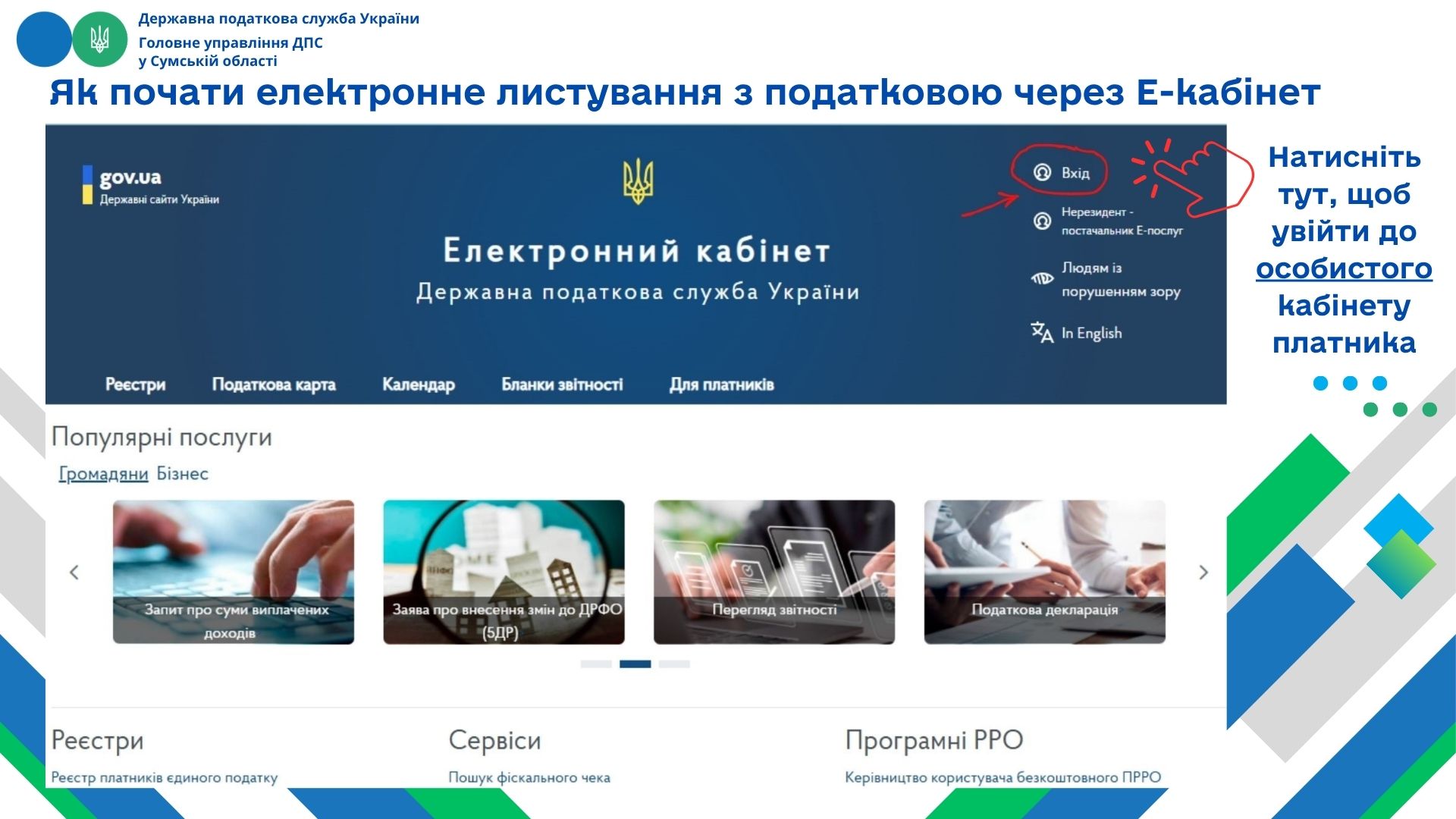 Головне управління ДПС у Сумській області наголошує на важливості освоєння платниками податків правил листування з податковою службою через Е-кабінет, оскільки цей сучасний спосіб обміну інформацією є офіційно визнаним та закріпленим законом.