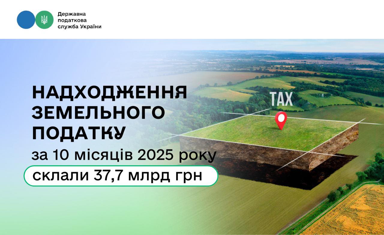 Платники Дніпропетровщини та Києва забезпечили понад третину всіх надходжень земельного податку за 10 місяців 2025 року.
