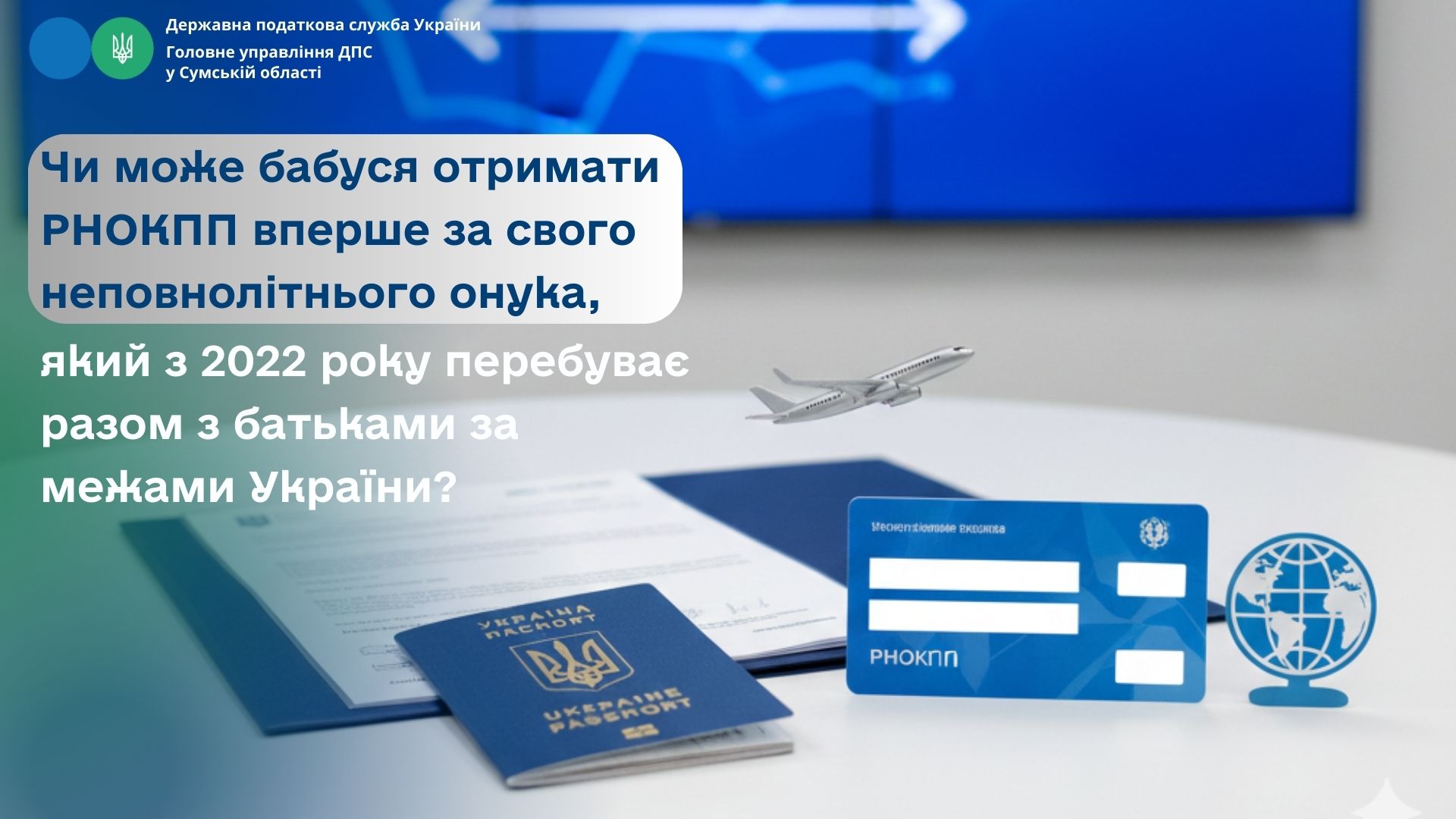 Чи може бабуся отримати РНОКПП вперше за свого неповнолітнього онука, який з 2022 року перебуває разом з батьками за межами України?