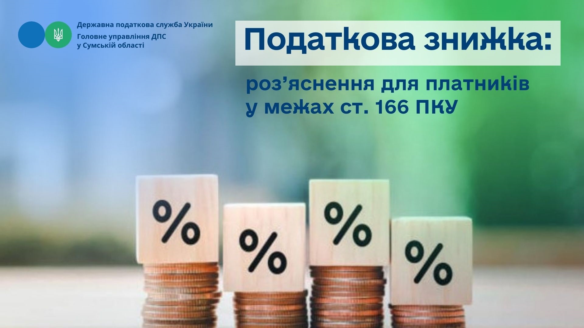 Головне управління ДПС у Сумській області нагадує, що відповідно до п.п. 14.1.170 п. 14.1 ст. 14 Податкового кодексу України (далі – ПКУ) податкова знижка для фізичних осіб, які не є суб’єктами господарювання, – це документально підтверджена сума (вартість) витрат платника податку на доходи фізичних осіб (ПДФО, податок) – резидента у зв’язку з придбанням товарів (робіт, послуг) у резидентів – фізичних або юридичних осіб протягом звітного року, на яку дозволяється зменшення його загального річного оподатковуваного доходу, одержаного за наслідками такого звітного року у вигляді заробітної плати та/або у вигляді дивідендів, у випадках, визначених ПКУ.