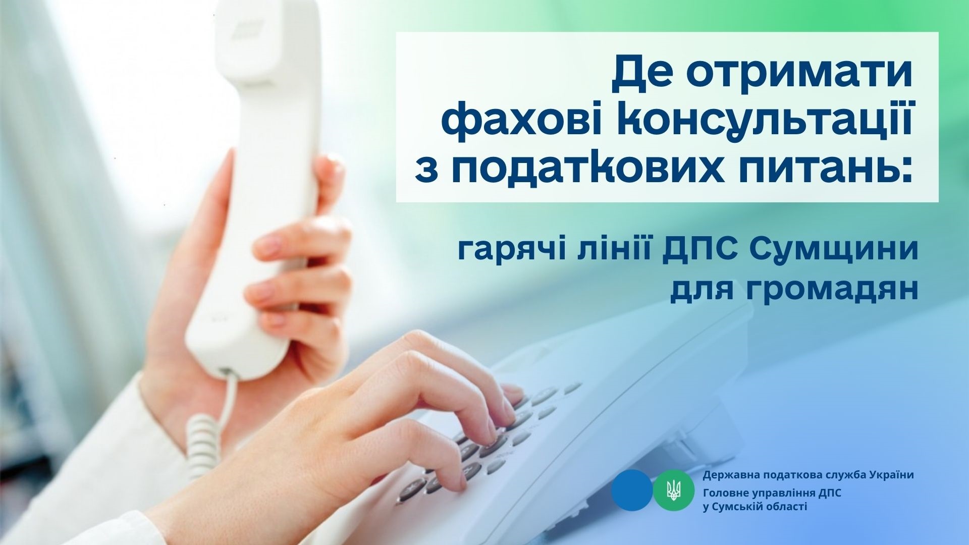 Для забезпечення зворотного зв’язку з платниками та оперативного надання роз’яснень з актуальних податкових питань, в Головному управлінні ДПС у Сумській області працюють спеціалізовані телефонні лінії за напрямами оподаткування фізичних осіб.