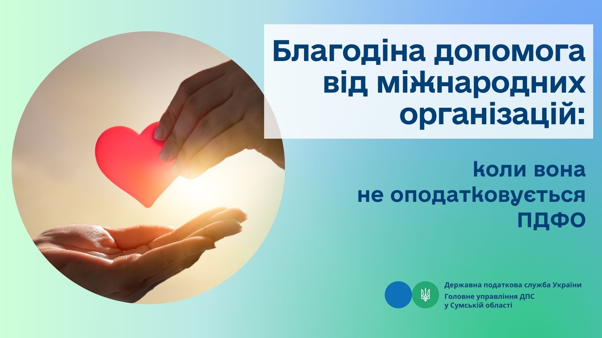 Головне управління ДПС у Сумській області нагадує, що відповідно до підпункту 165.1.56 пункту 165.1 статті 165 ПКУ сума (вартість) благодійної допомоги, яка виплачена (надана) міжнародними благодійними організаціями (їх філіями, представництвами), перелік яких визначається Кабінетом Міністрів України, на користь: