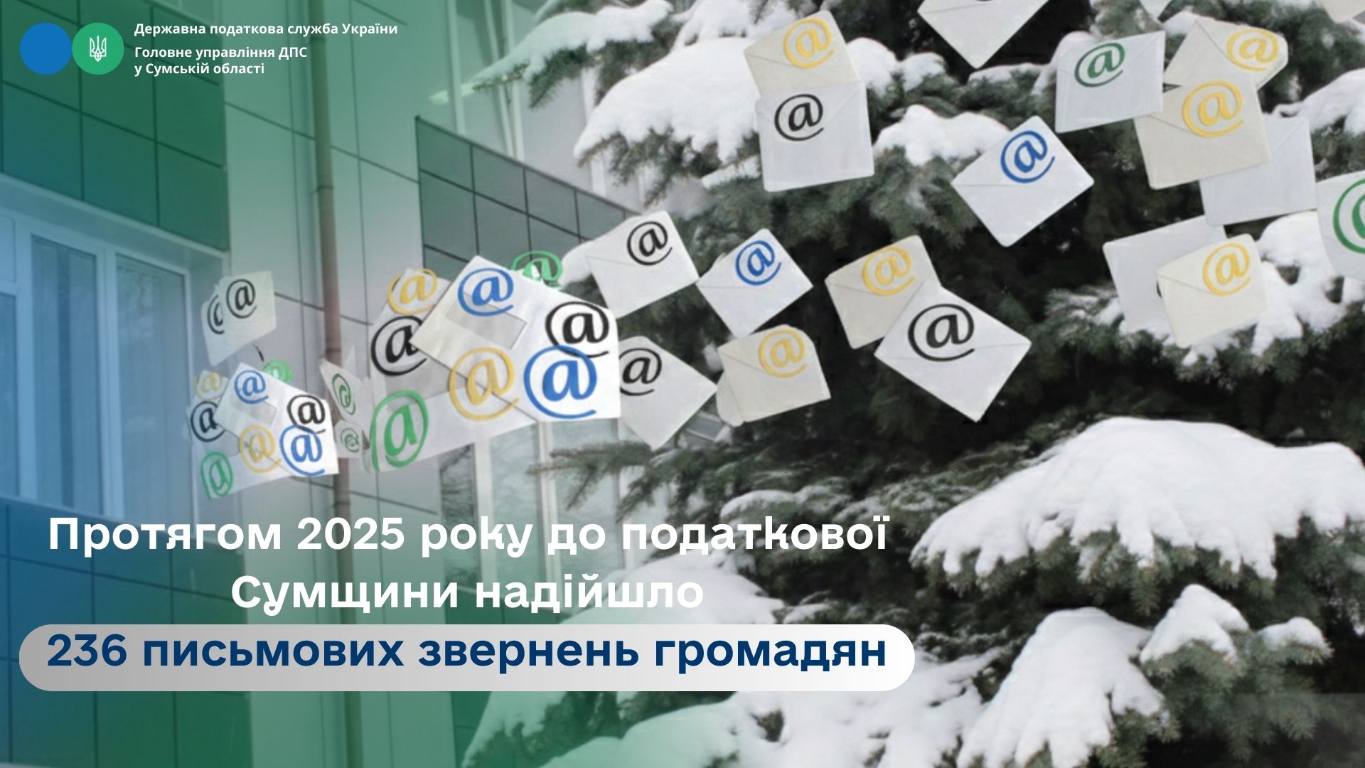 Протягом 2025 року до податкової Сумщини надійшло 236 письмових звернень громадян