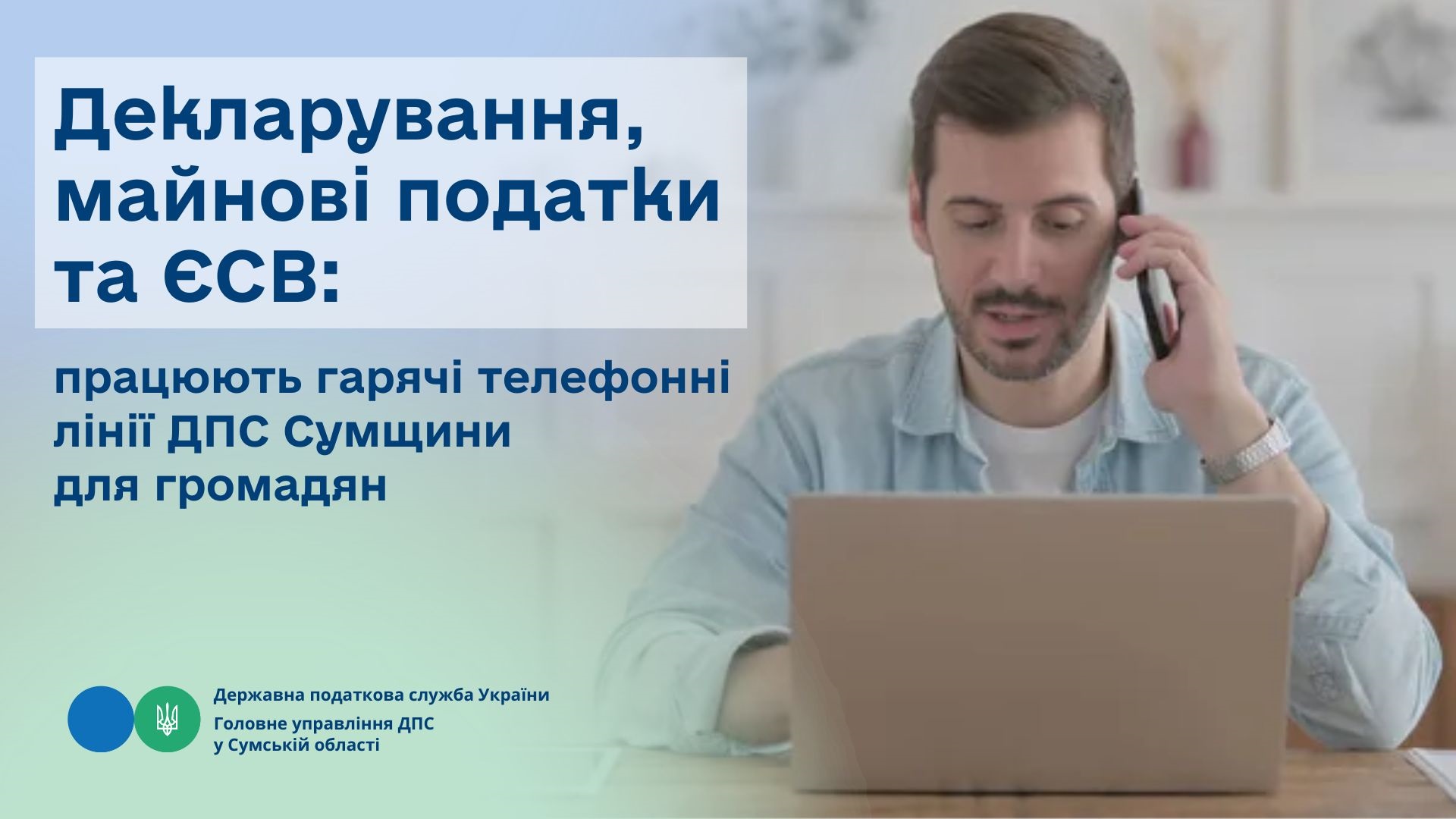 Для забезпечення зворотного зв’язку з платниками та оперативного надання роз’яснень з актуальних податкових питань, в Головному управлінні ДПС у Сумській області працюють спеціалізовані телефонні лінії за напрямами оподаткування фізичних осіб.