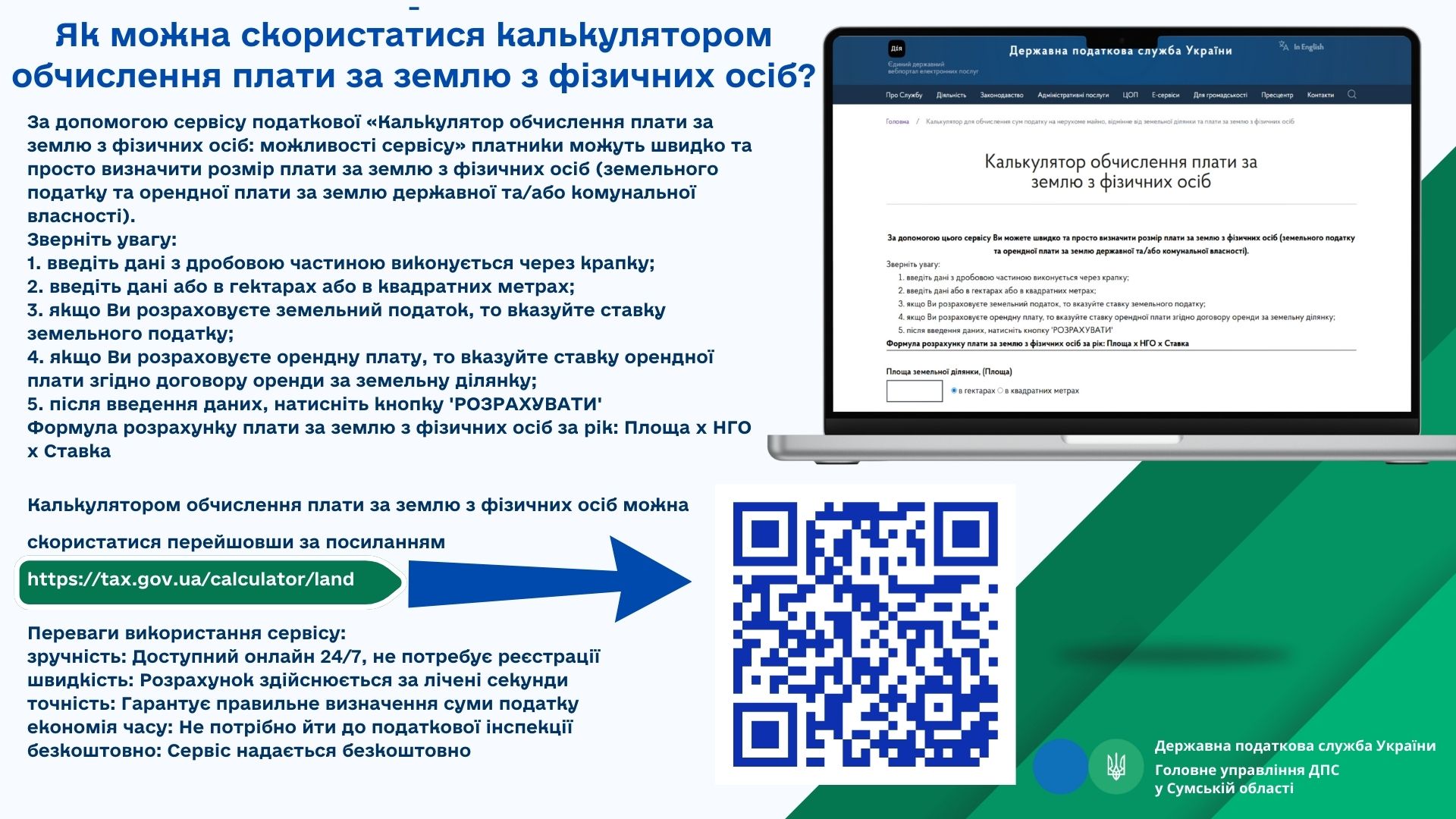 Як розрахувати плату за землю за лічені секунди? Податкова Сумщини рекомендує зручний сервіс!