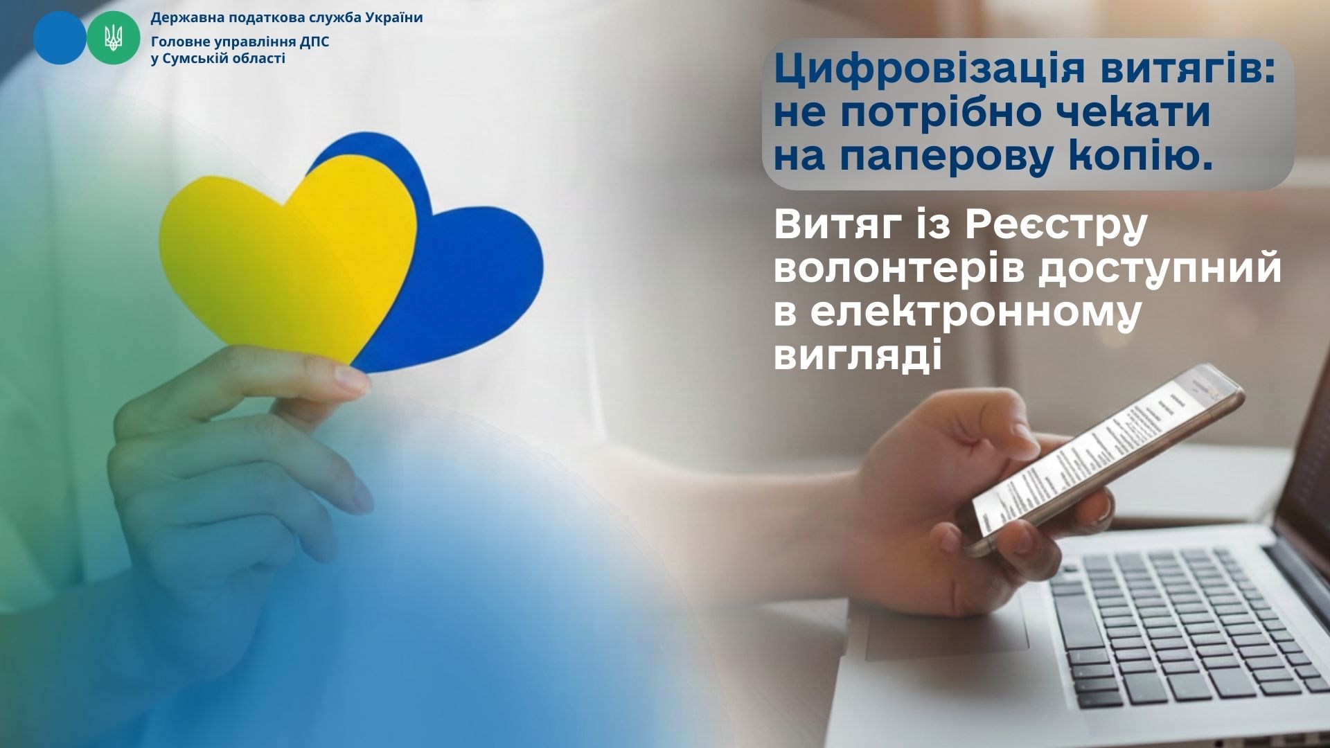 Головне управління ДПС у Сумській області інформує, що для волонтерів запроваджено можливість отримувати витяг із Реєстру волонтерів в електронному вигляді, що означає зручний доступ до власних даних онлайн.