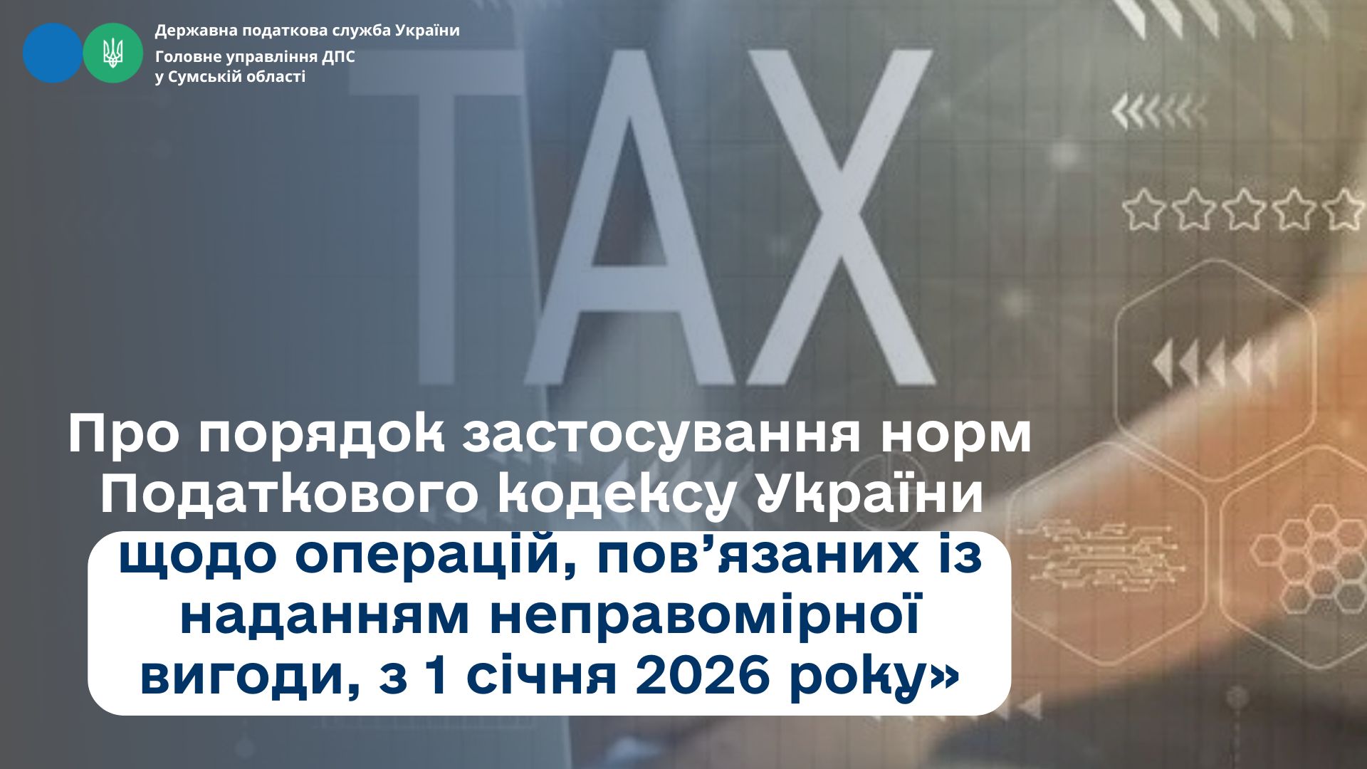 Головне управління ДПС у Сумській області  звертає увагу платників податків Сумщини, з 1 січня 2026 року в Україні застосовуються норми Податкового кодексу України щодо виявлення та податкових наслідків операцій, пов’язаних із наданням неправомірної вигоди службовій особі, у тому числі іноземних держав.