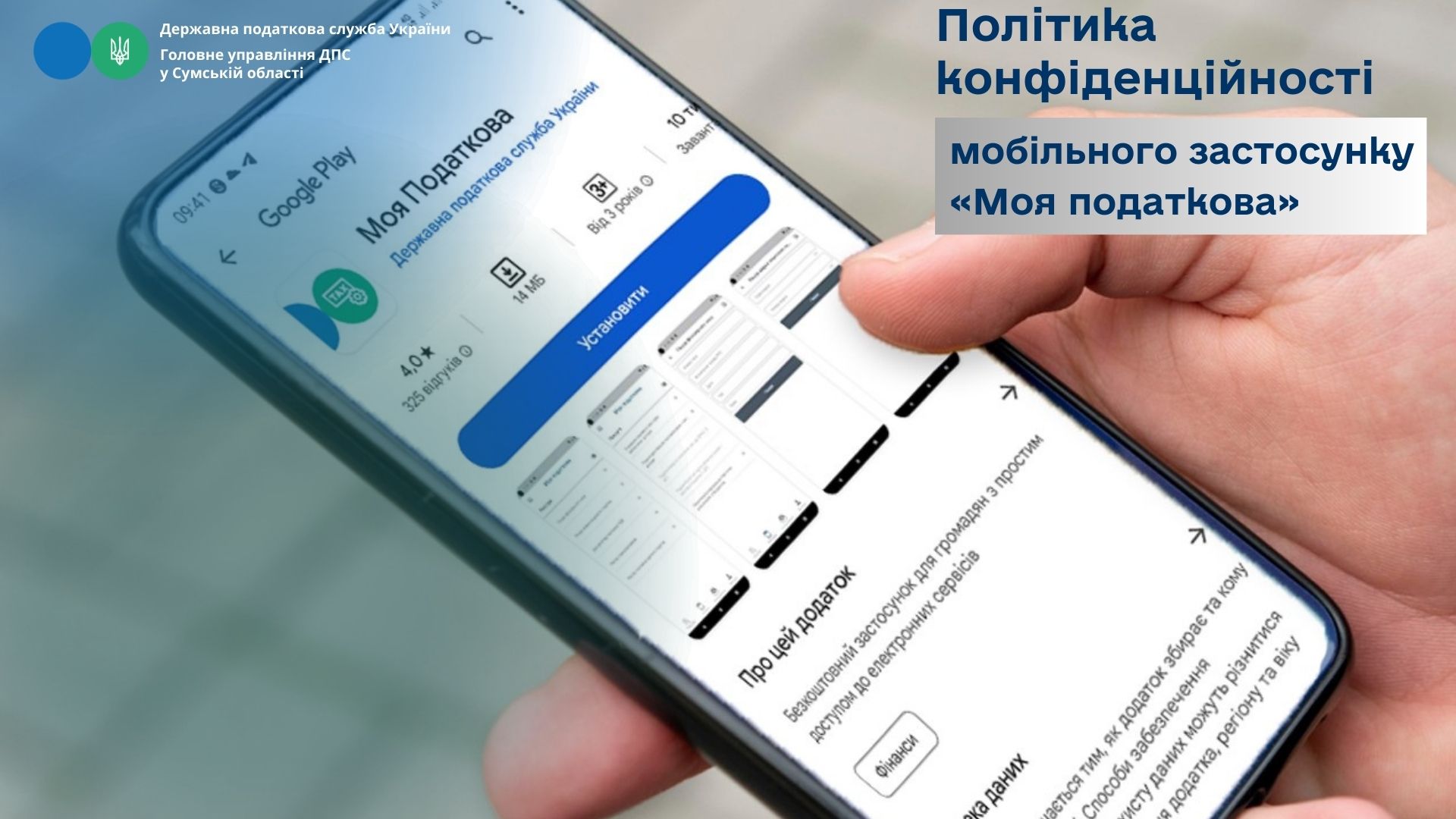 Відповідно до пунктів 1 та 2 частини другої статті 8 частини другої статті 12 Закону України «Про захист персональних даних» Державна податкова служба України повідомляє про володільця, розпорядника, місцезнаходження, склад і мету збору персональних даних, що обробляються за допомогою програмних засобів Інформаційно-комунікаційної системи ДПС, безкоштовним програмним рішенням ДПС (мобільний застосунок «Моя податкова»).