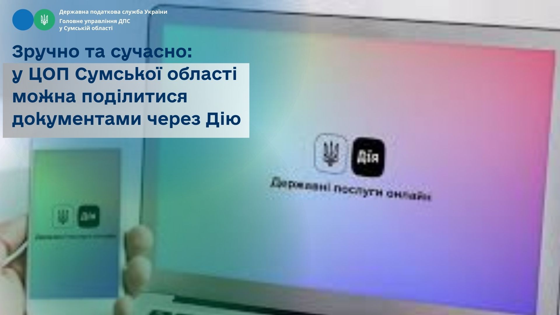 Зручно та сучасно: у ЦОП Сумської області можна поділитися документами через Дію