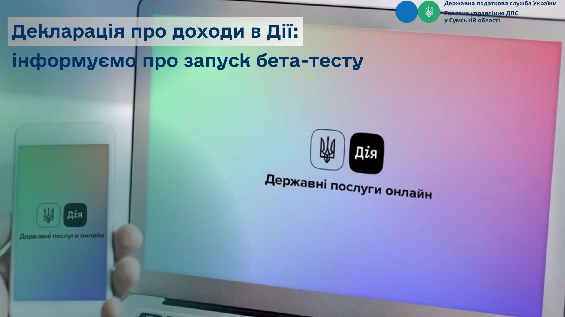 Декларація про доходи в Дії: Головне управління ДПС у Сумській області інформує про запуск бета-тесту