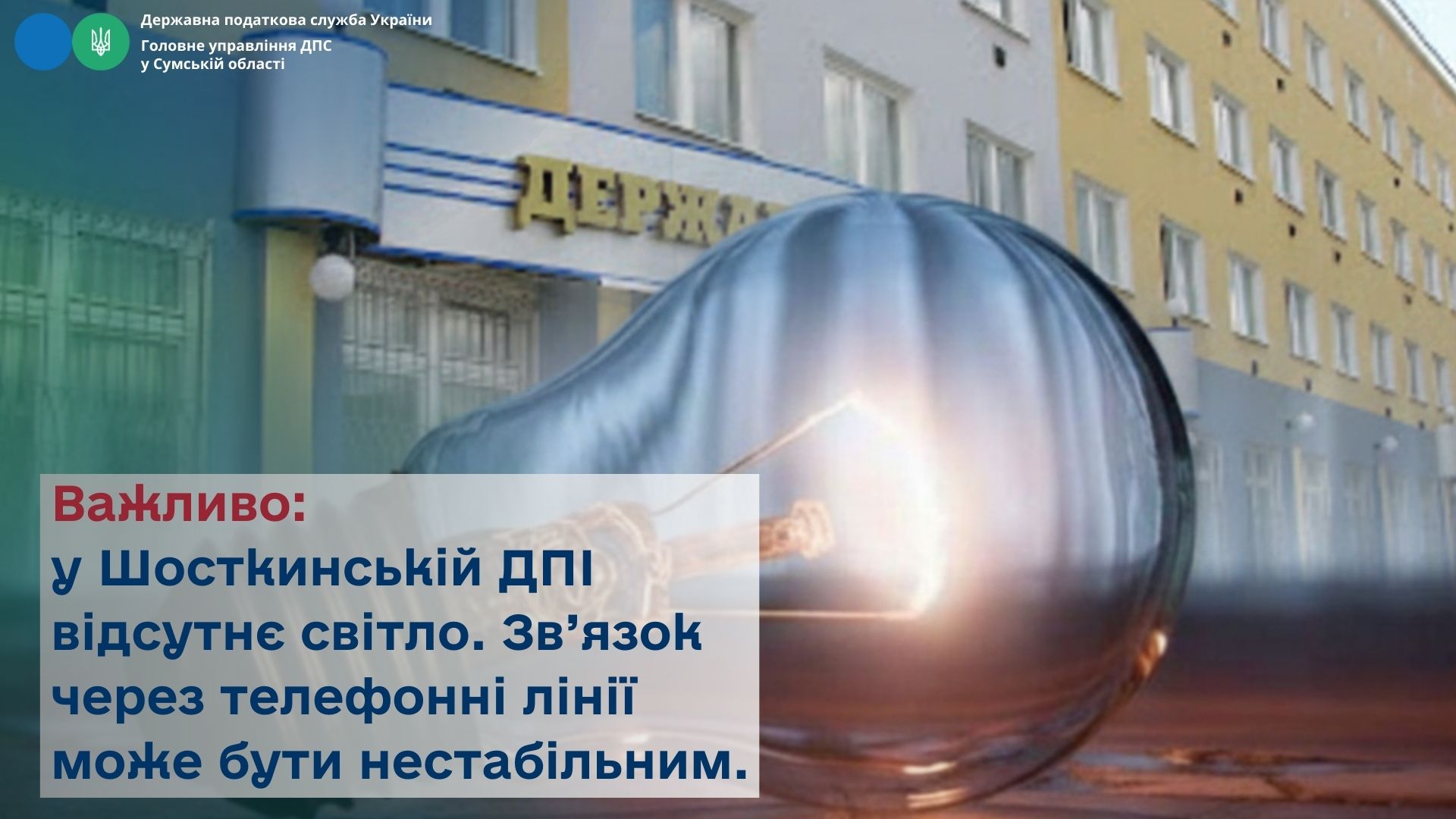 Важливо: у Шосткинській ДПІ відсутнє світло. Зв’язок через телефонні лінії може бути нестабільним