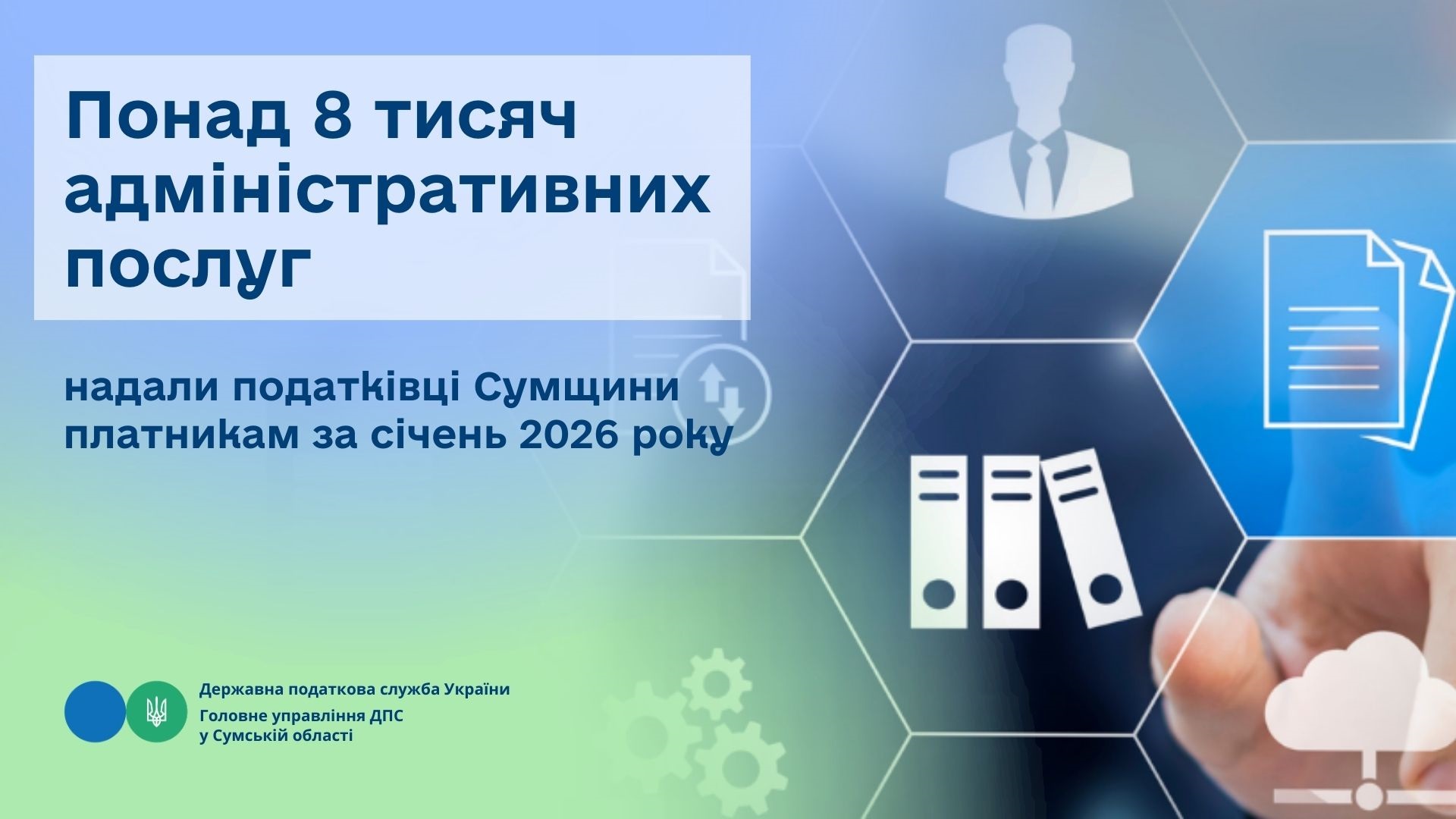 Так, за січень 2026 року до Головного управління ДПС у Сумській області надійшло 8 459 звернень від платників податків щодо отримання адміністративних послуг.